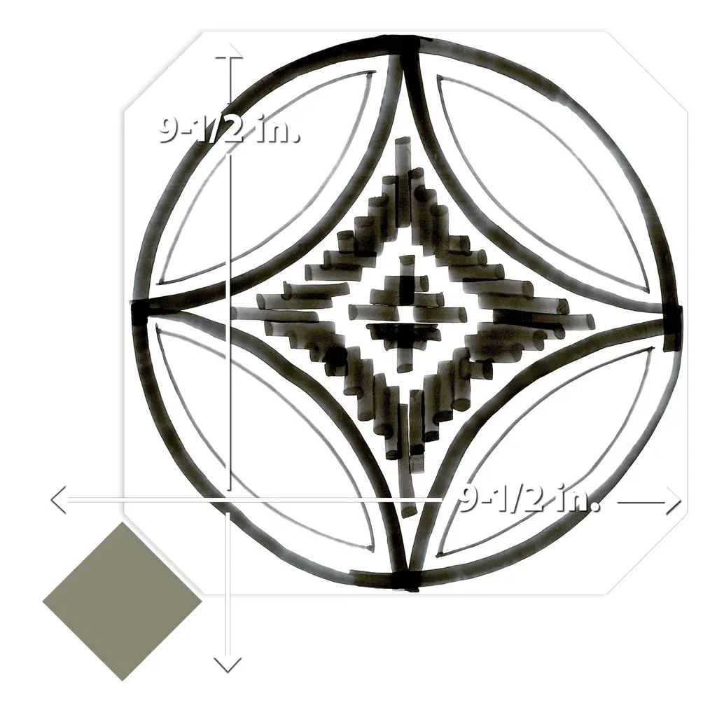Merola Tile Vaudeville Octagon Deco Sombra With Taco Oliva 7-7/8" X 7-7/8" Porcelain Floor And Wall Tile - Sample Swatch