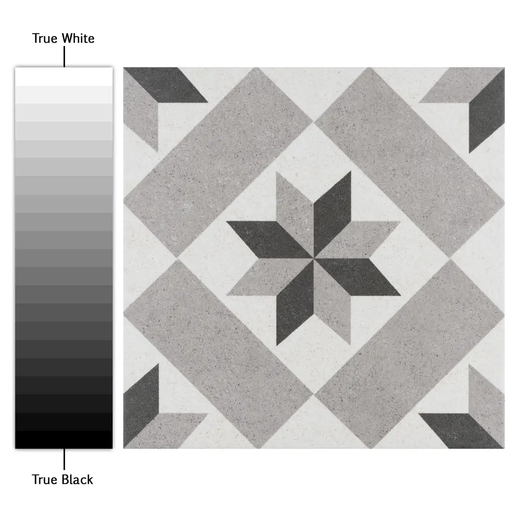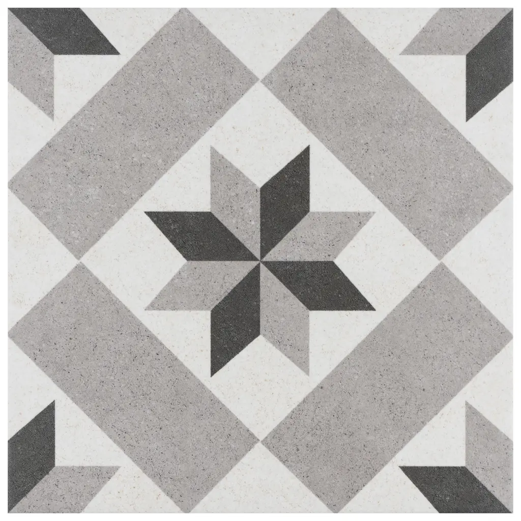 Capturing the appearance of an encaustic look, our Vintage Star Grey Porcelain Floor and Wall Tile features a slightly textured, satin finish, providing decorative appeal that adapts to a variety of stylistic contexts. With its impervious, frost-resistant features, this white square tile is an ideal selection for a variety of spaces including indoor and outdoor commercial and residential installations, kitchens, bathrooms, backsplashes, showers, hallways, entryways, patios, pools and fireplace facades. This tile is a perfect choice on its own or with other products in the Merola Tile, Vintage Collection. To ensure optimal results, please consult with your installer and review the product specifications to confirm that this tile meets the specific needs of your project.