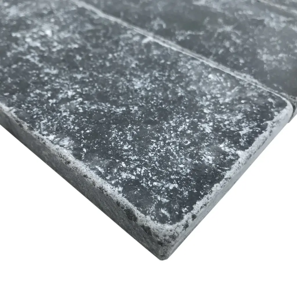 Midnight Marble 3"x9" Tumbled Tile is a tile that adds a rustic and earthy feel to any space. The tumbled finish creates a weathered look that gives it a sense of character and charm. With its rich grey color and unique veining patterns, Midnight 3"x9" Tumbled Tile is perfect for creating a natural and organic feel in any room. Whether used as a backsplash, shower wall, or flooring, this tile complements a wide range of design styles, from industrial to a farmhouse. Its high-quality marble material makes it durable and long-lasting, while its tumbled finish makes it slip-resistant and safe for use in wet areas.What's included?Product DetailsSample Details