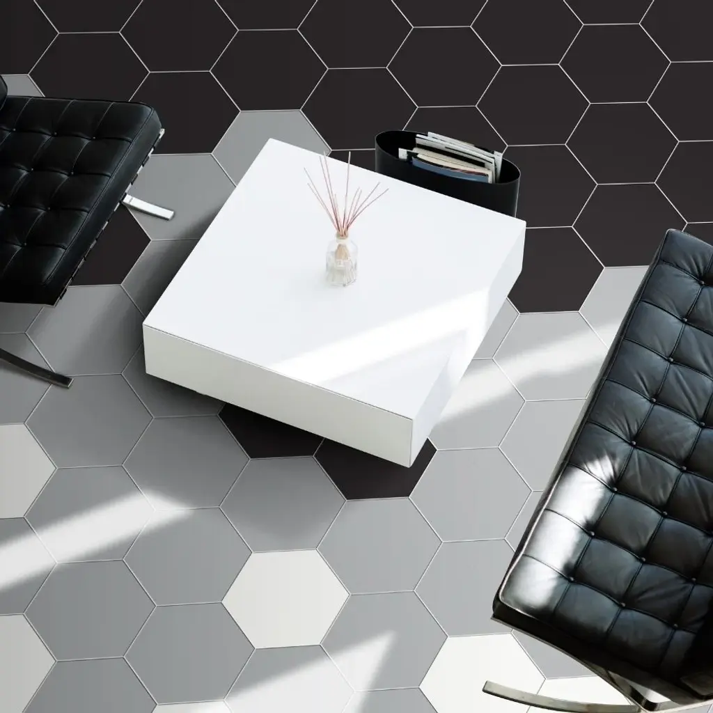 Bring your home into the future with these modern, fun hex tiles from The Tile Life's Milan collection. These hexagon porcelain floor and wall tiles are easy to mix and match to create a custom pattern in your bathroom, kitchen, or entryway. These porcelain hex tiles vary in PEI rating but are suitable for light residential use on floors or walls. The Tile Life Milan 8 inches x 9.5 inches Hexagon Porcelain Floor and Wall Tile is a stylish and versatile option, approved for both residential and commercial indoor installations. Available in three elegant colors—White, Black, and Silver—it's perfect for any space. FEATURES:DIMENSIONS: