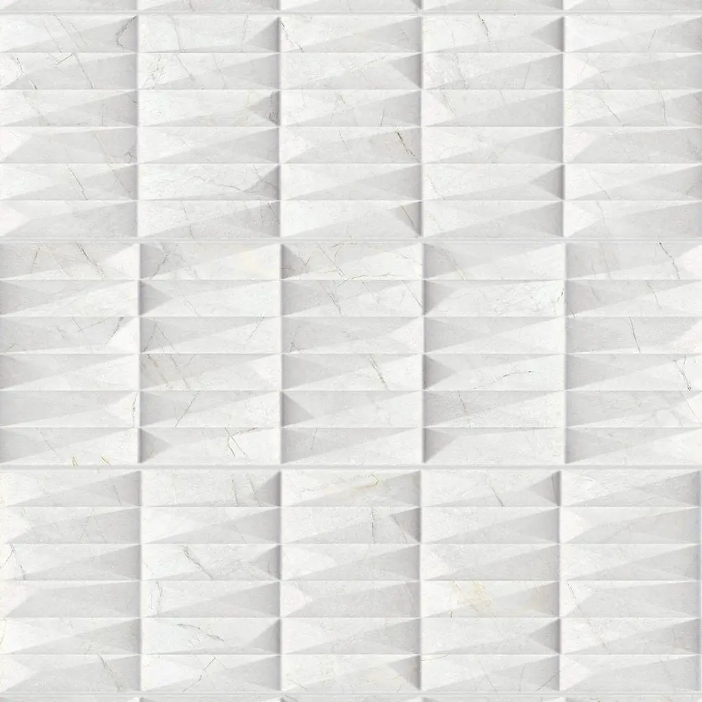 The Tile Life's Milos 12" x 40" Ceramic Wall Tile is a unique large format tile that marries multi-dimensional geometric patterns with different textures to create a high-end installation look with fewer seams. Perfect for home designers looking to express their individuality, Milos offers the versatility of a white tile with the boldness of a patterned one. Install this tile as a shower wall, backsplash, or feature wall for a stunning new look. FEATURES: DIMENSIONS: