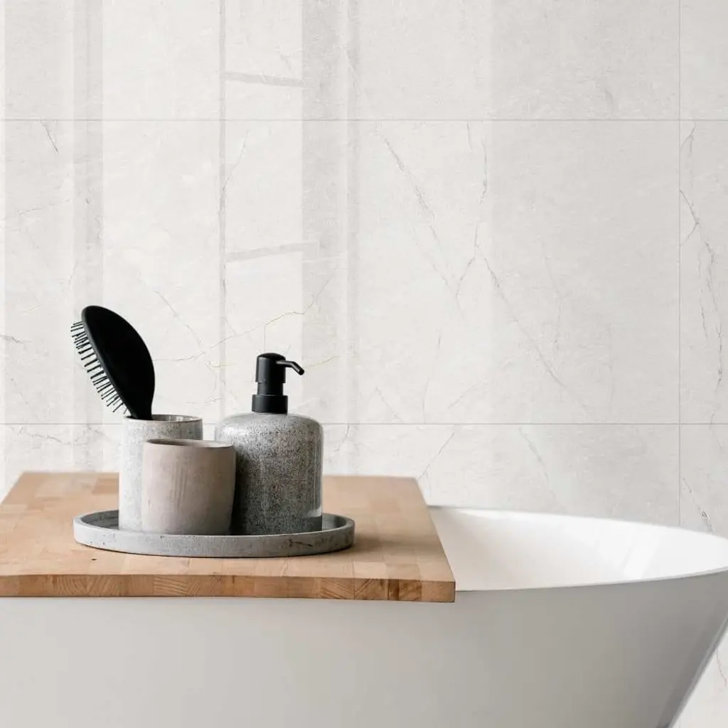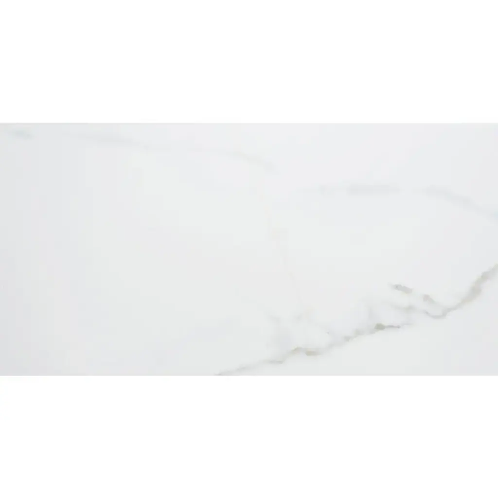 The Tile Life Milos Sky 12" x 40" White Tile is a classic glossy ceramic with a high-end look and subtle movement built through its gentle gray veining. This large format ceramic tile presents a gorgeous natural stone--noteworthy for replicating marble extracted from Italian Alpine quarries. Milos Sky's pure white body perfectly imitates authentic marble and will instantly elevate any space. This waterproof tile will make a stunning installation for any bathroom, shower, or kitchen. FEATURES: DIMENSIONS: