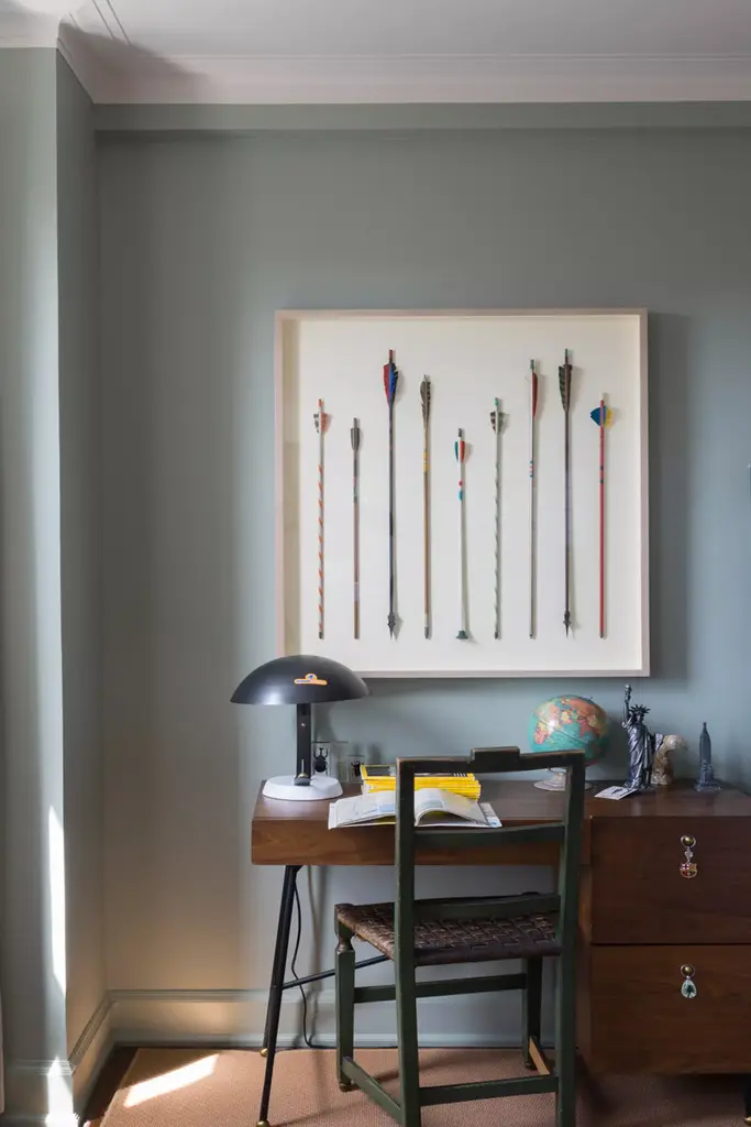 #### *A SOFT GREY-GREEN*This modest grey-green takes its name from the bit of West Country dialect for when there is a mix of both mist and drizzle in the southwest of England. A lighter shade of Pigeon, rooms feel soft and contented in this rather indeterminate color while green pigments quash any cool blue undertones.Recommended Primer & Undercoat: Mid Tones
