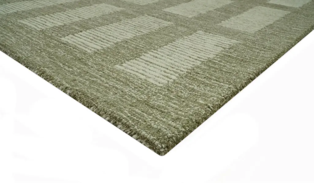 Modern Geometrical Olive And Ivory Textured Hand Tufted Multi Size Wool Rug - 1X1 Swatch