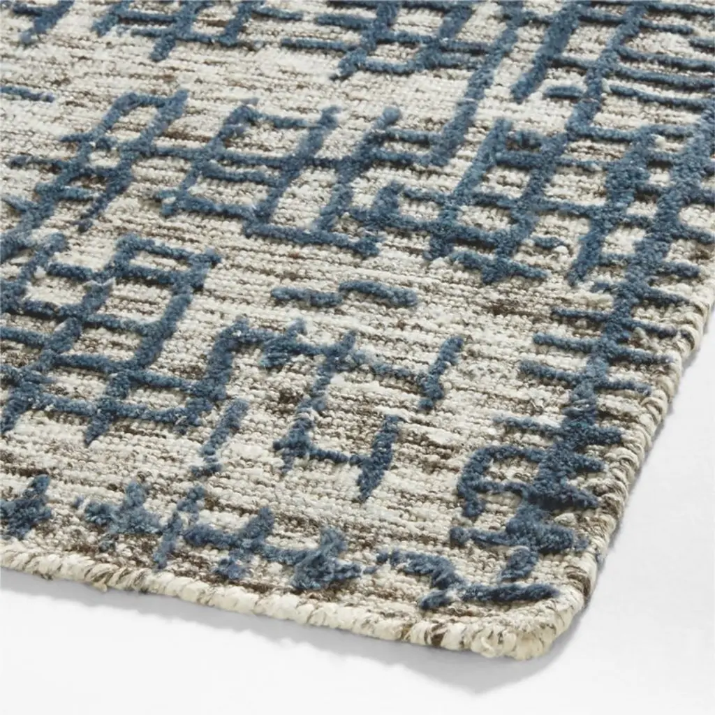 Try it on first. Because color representation may vary by screen, using a swatch is an easy way to see exactly how your favorite rugs will look in your home. Our rug swatches ship free and can be returned online or at store near you for a full refund. It's fast, easy and free.Our update on the grid, the Montauban rug breaks up the geometry into an abstract pattern that reads as both contemporary and vintage. Made of soft wool enhanced with a silk-like fiber, the handloomed rug features a base pile of tonal greys that's over-tufted with the broken grid motif in blue for exceptional texture and graphic contrast. The rug anchors your decor with a fresh, sophisticated foundation that's perfect for medium-traffic rooms.