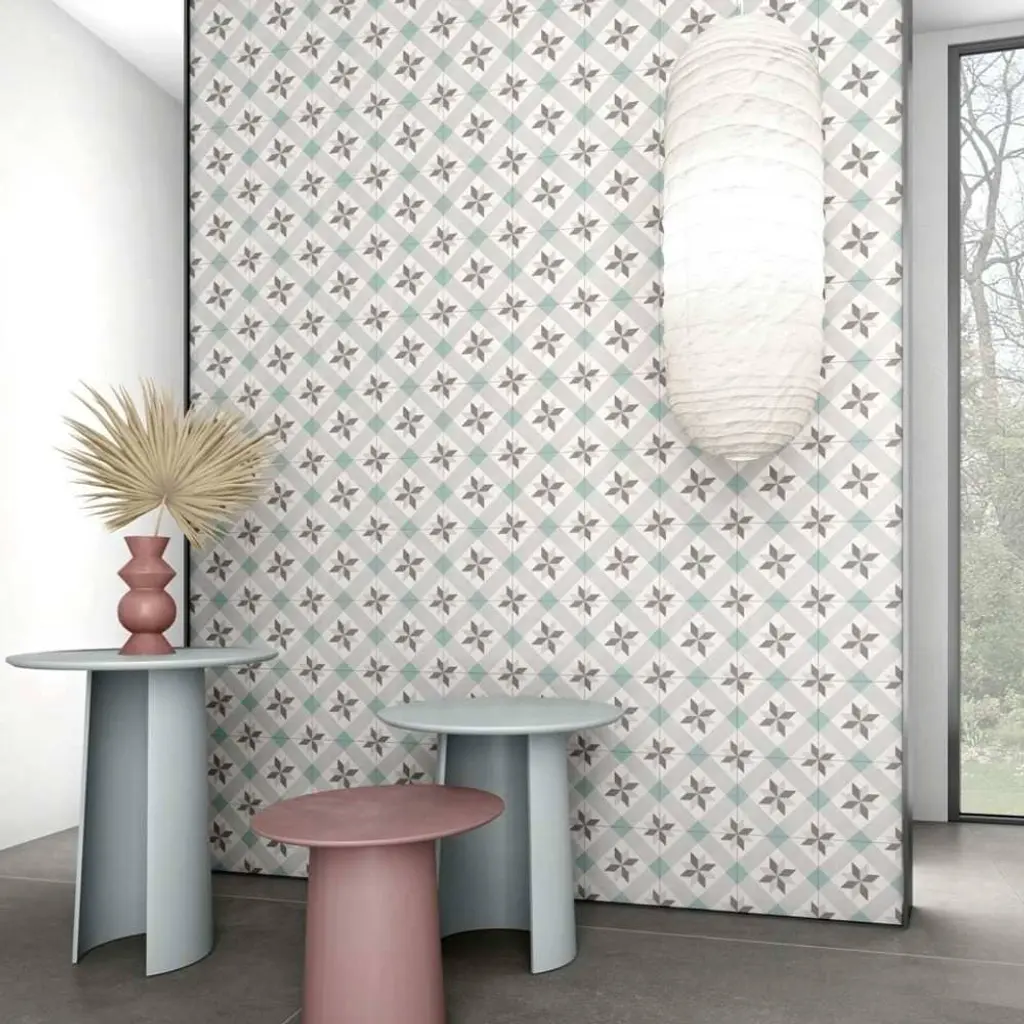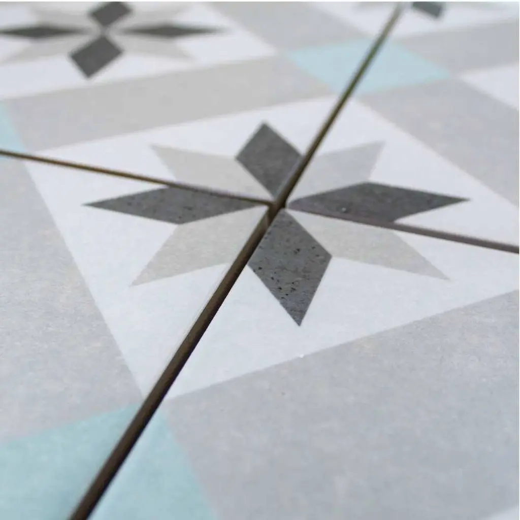 With a cool-toned color palette and intricate geometric design, a quick glance is enough to make you fall in love with this tile. The Tile Life's Flora Pearl Porcelain Tile finds itself the object of every designer's affection with its multi-tone shapes loosely inspired by Moroccan interior style. The pairing of its calming color palette and its unique design make Flora a tile that every home designer will love. This encaustic porcelain tile is a great fit for any bathroom floor, bathroom wall, shower wall, kitchen floor, fireplace surround, outdoor, and/or backsplash. FEATURES: DIMENSIONS: