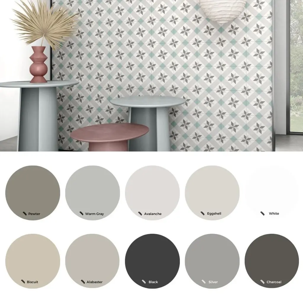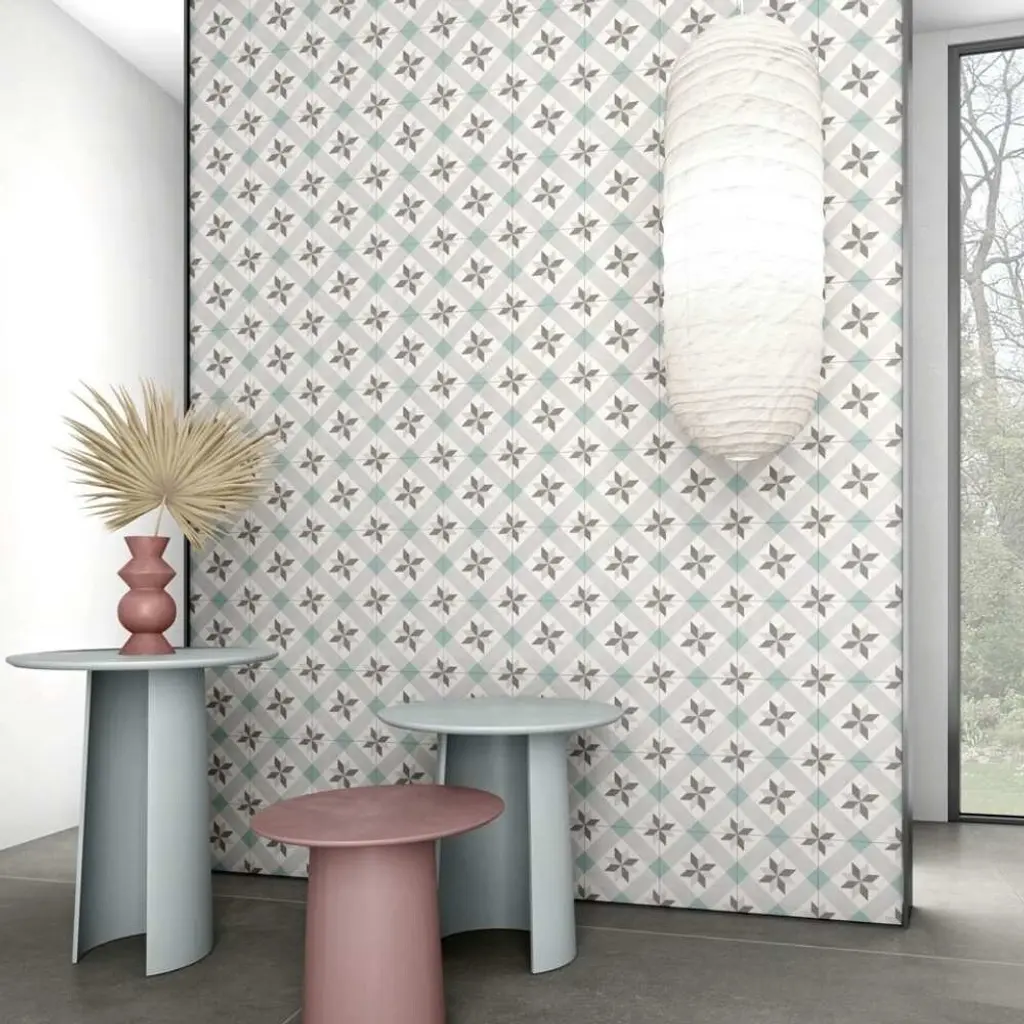 With a cool-toned color palette and intricate geometric design, a quick glance is enough to make you fall in love with this tile. The Tile Life Flora 9 inches x 9 inches Porcelain Floor and Wall Tile finds itself the object of every designer's affection with its multi-tone shapes loosely inspired by Moroccan interior style. The pairing of its calming color palette and its unique design make Flora a tile that every home designer will love. This encaustic porcelain tile is a great fit for any bathroom floor, bathroom wall, shower wall, kitchen floor, fireplace surround, outdoor, and/or backsplash. FEATURES: DIMENSIONS: