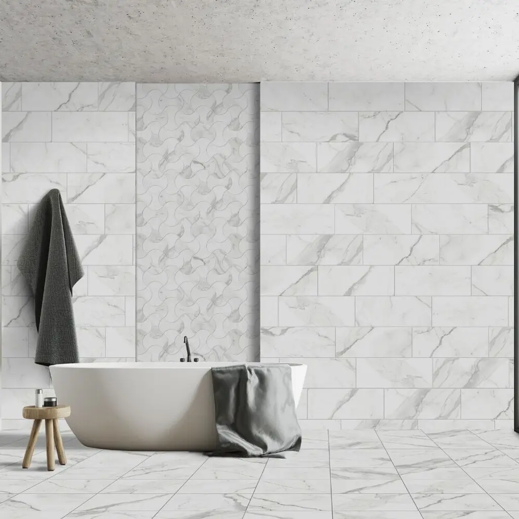 Transform any residential or commercial space with the timeless museum collection. This marble look is a perfect complement to any contemporary or classic aesthetic. The elegant, marble rectangular tile series with several sizes blends the look of natural stone with porcelain durability and minimal maintenance. FEATURES:DIMENSIONS: