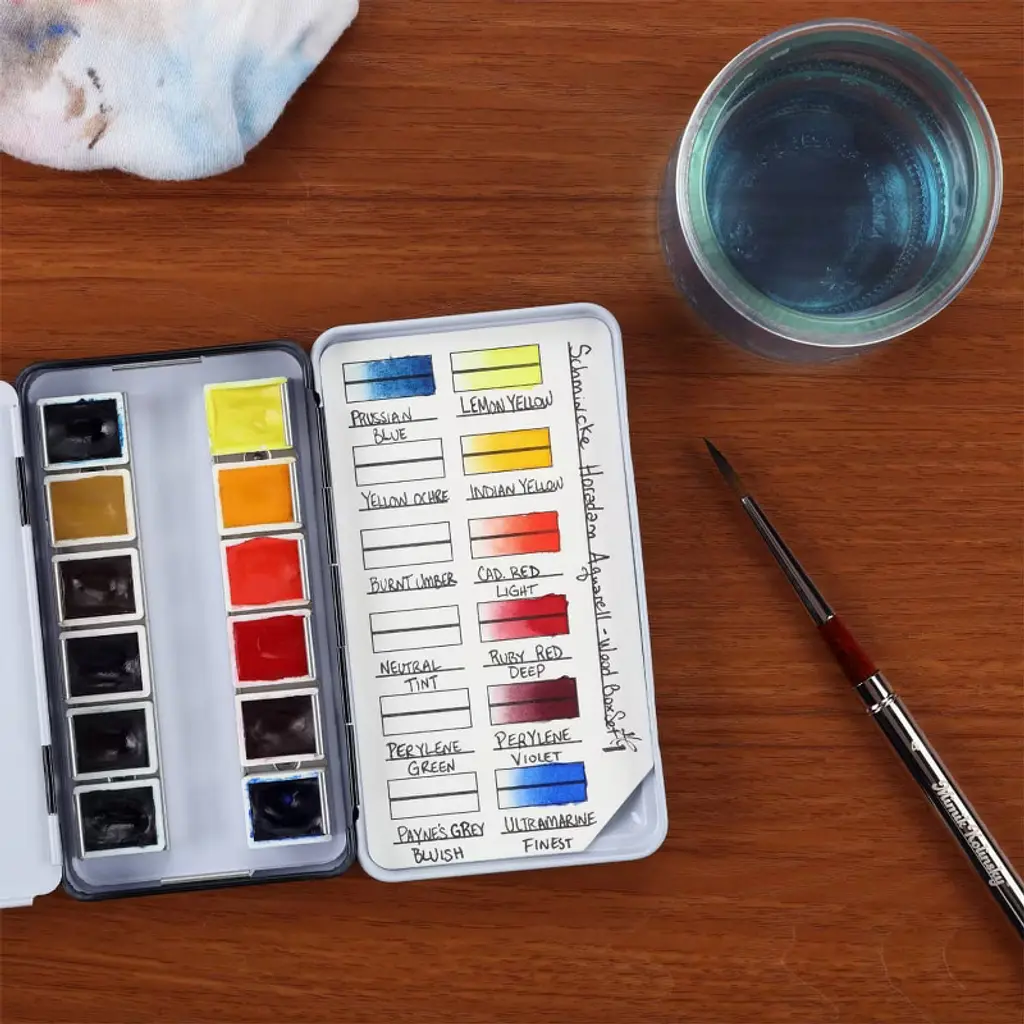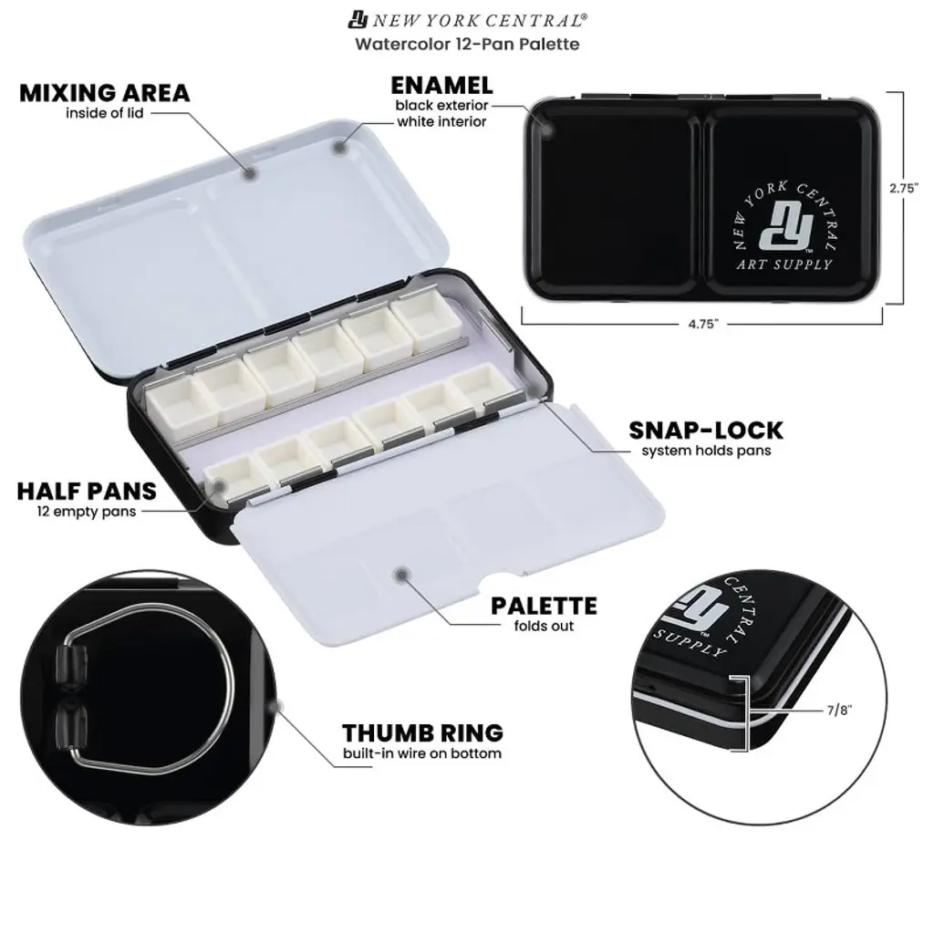 New York Central Watercolor Palette - 12 Empty Half Pans Boxes And Palette With 10 Watercolor Swatch Cards