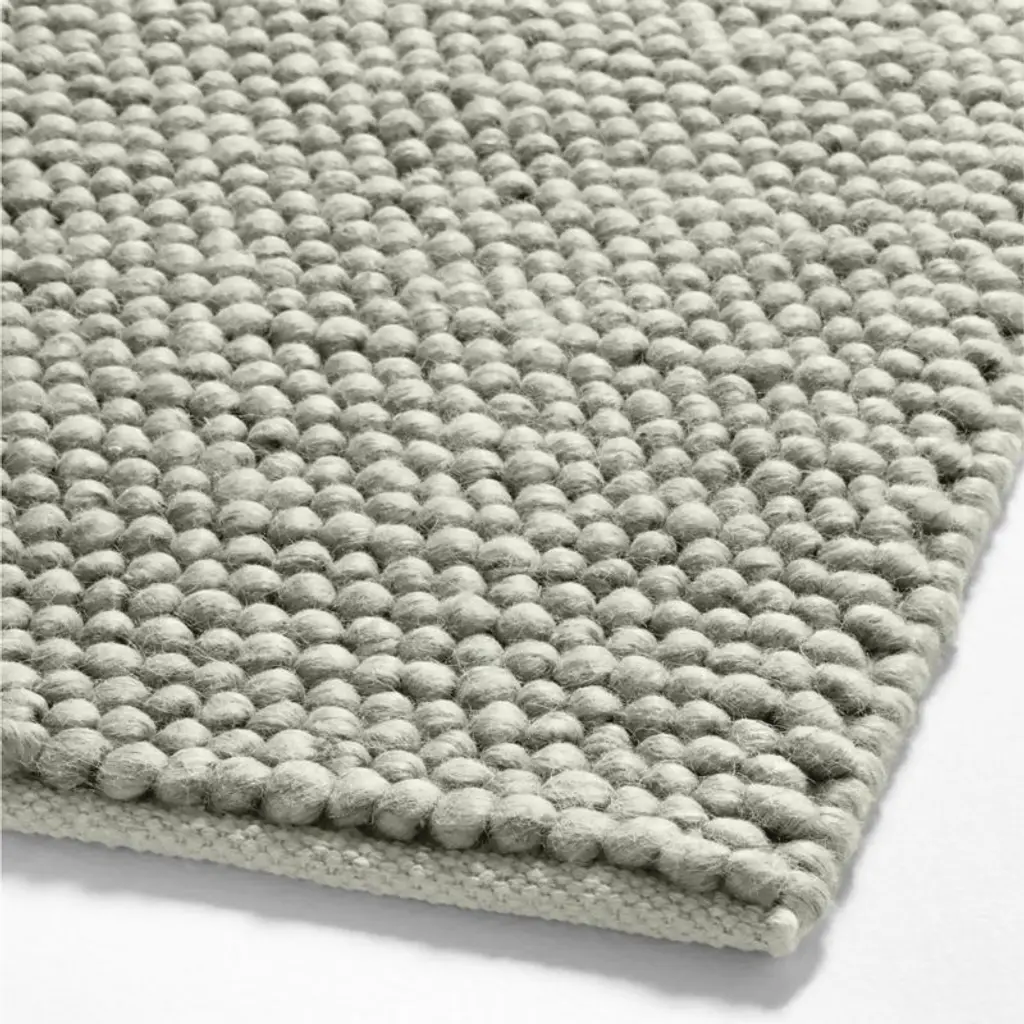 Try it on first. Because color representation may vary by screen, using a swatch is an easy way to see exactly how your favorite rugs will look in your home. Our rug swatches ship free and can be returned online or at store near you for a full refund. It's fast, easy and free.Chunky loops of naturally hued wool in countless shades of grey create a stunningly simple rug that stands up to everyday life. Highly skilled artisans craft Orly by hand, weaving the undyed wool - plus a bit of performance fiber for strength - into an elevated yet durable area rug that disguises spills thanks to its variegated look. We love the depth and organic warmth of this irresistibly textured grey rug in a living room, entryway or under a dining table.