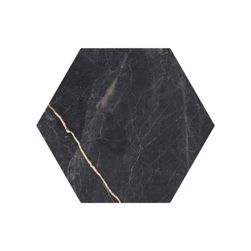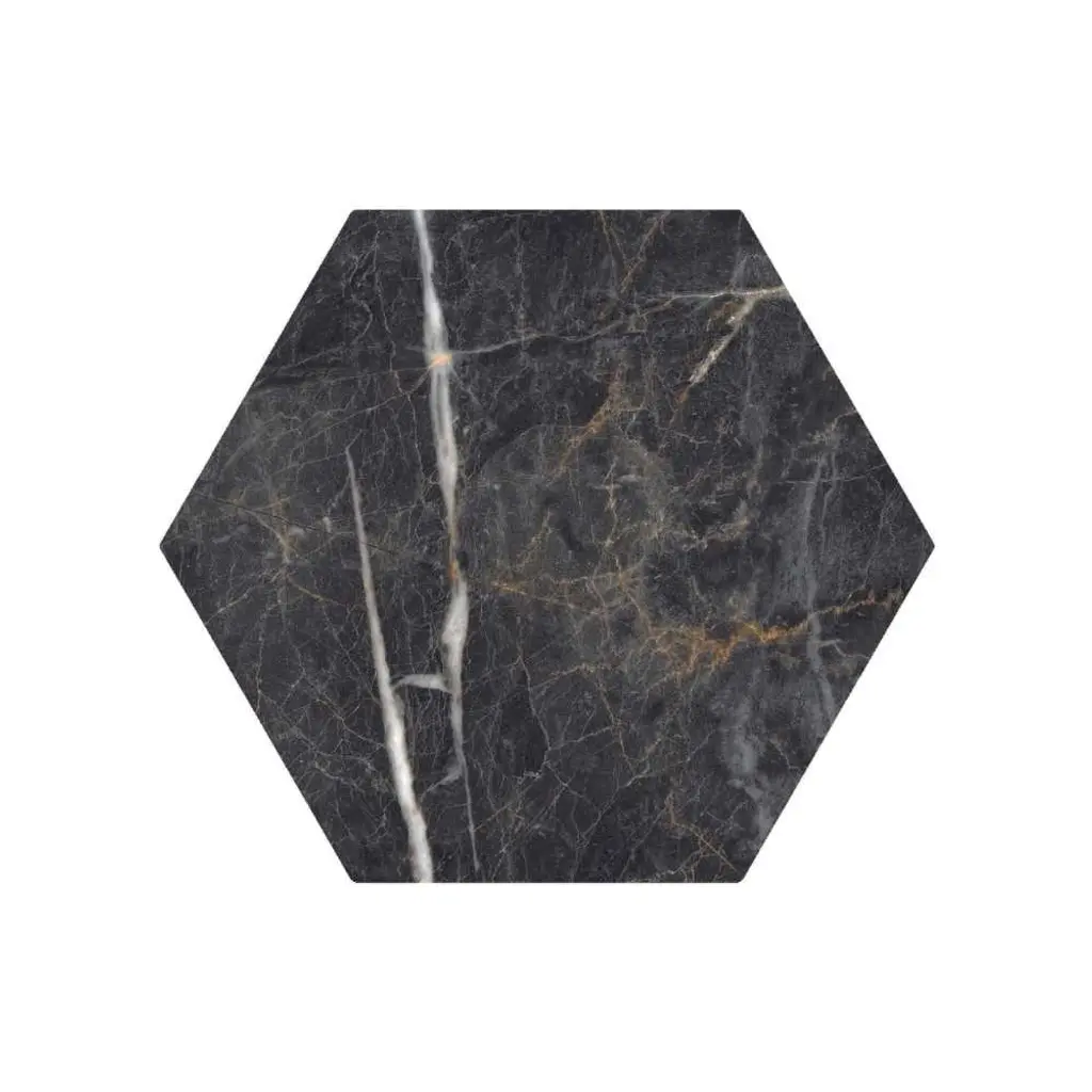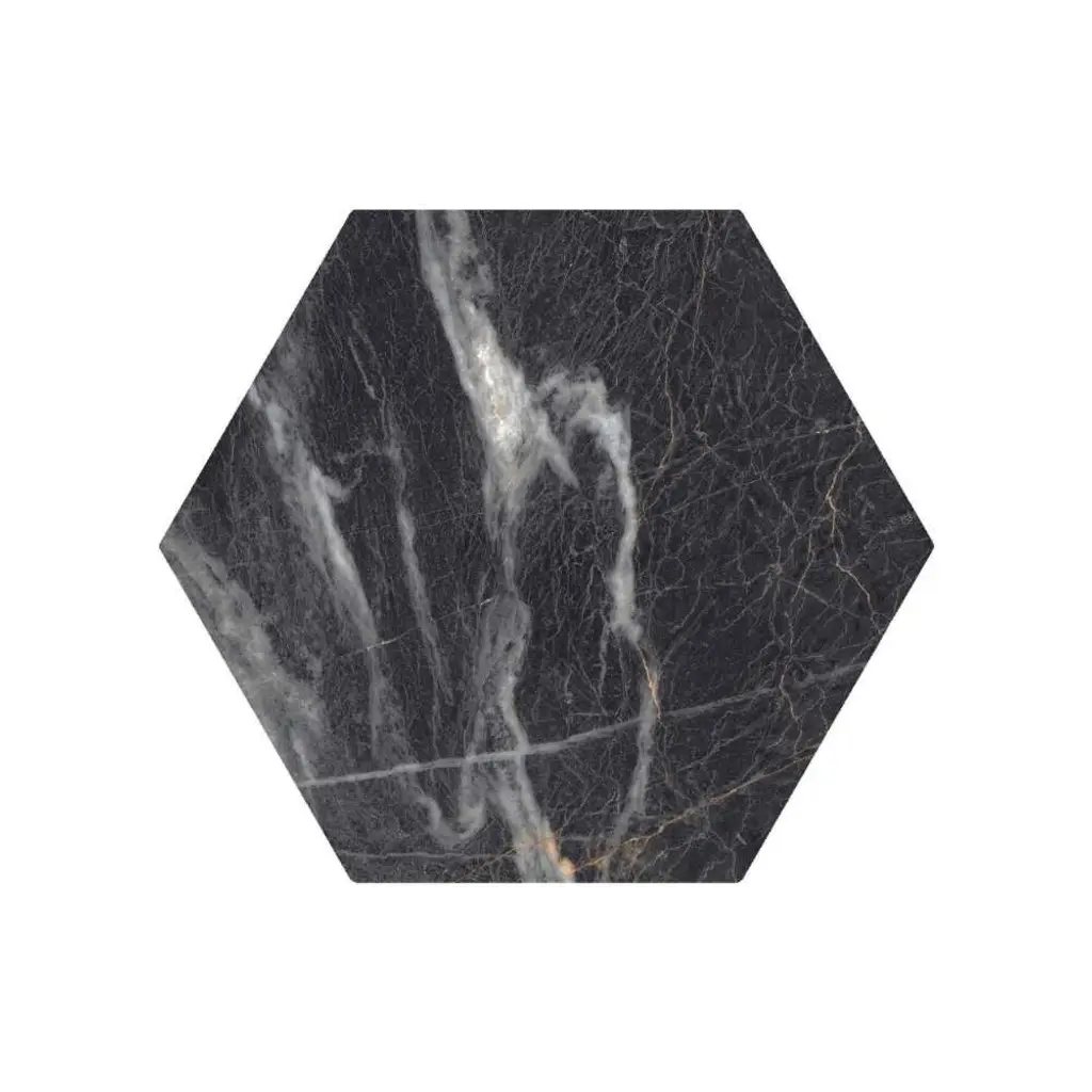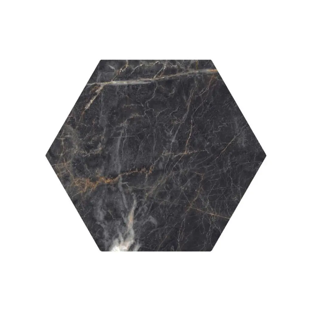Oscuro is our newest hexagon tile with white and gold veining on an inky black background, making it a focal point in any room. The Tile Life's Oscuro captures the beauty of natural stone while maintaining the durability of porcelain. This tile works well on any floor or wall space. FEATURES: DIMENSIONS: