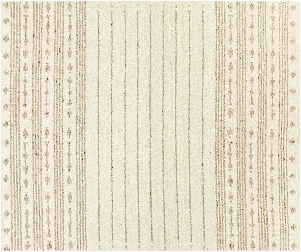 With a randomized light-to-dark gradient pattern, this refined luxury wool rug features a broken stripe effect reminiscent of ikat-dyed Japanese textiles. Created by skilled artisans using a loom with a warp and weft foundation upon which wool threads are hand knotted for a durable, soft, and nubby pile.