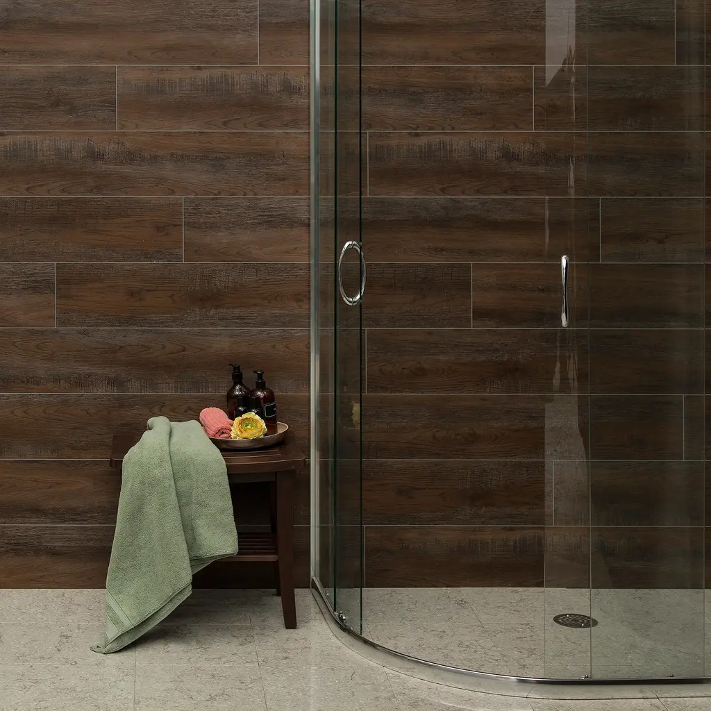 Palisade Waterproof Interlocking Wall Planks are 100% waterproof and do not require grout, making them ideal for moist environments. Palisade Wall Planks are easily installed using tube adhesive; simply interlock the edges. No special tools or saws are required, eliminating the need for contractors. The engineered rigid core technology provides warmth in a durable, scratch and UV-resistant tile. Palisade is available in many elegant finishes to fit any room's decor. • Elegant plank look combined with no-mess grout appearance, ideal for any room in your home • Engineered vinyl core topped with decorative foil and protective film provides a rigid, lightweight, durable wall plank • Interlocking edge design provides easy project layout, perfect tile connection and a no-mess grout design • 100% waterproof - ideal for moist or wet environments, even showers • Palisade can be applied over existing tiles, eliminating the need for removal or demolition • Perfect for kitchens, baths, basements, laundry rooms, accent walls • Available in a carton of 7 planks; an 81.5 sq ft kit which includes 5 boxes or 35 pieces of interlocking Palisade planks, two 94" Inside Trims, two 94" J-Trims, two 94" L-Trims, five tubes of adhesive and two tubes of sealer; and a sample