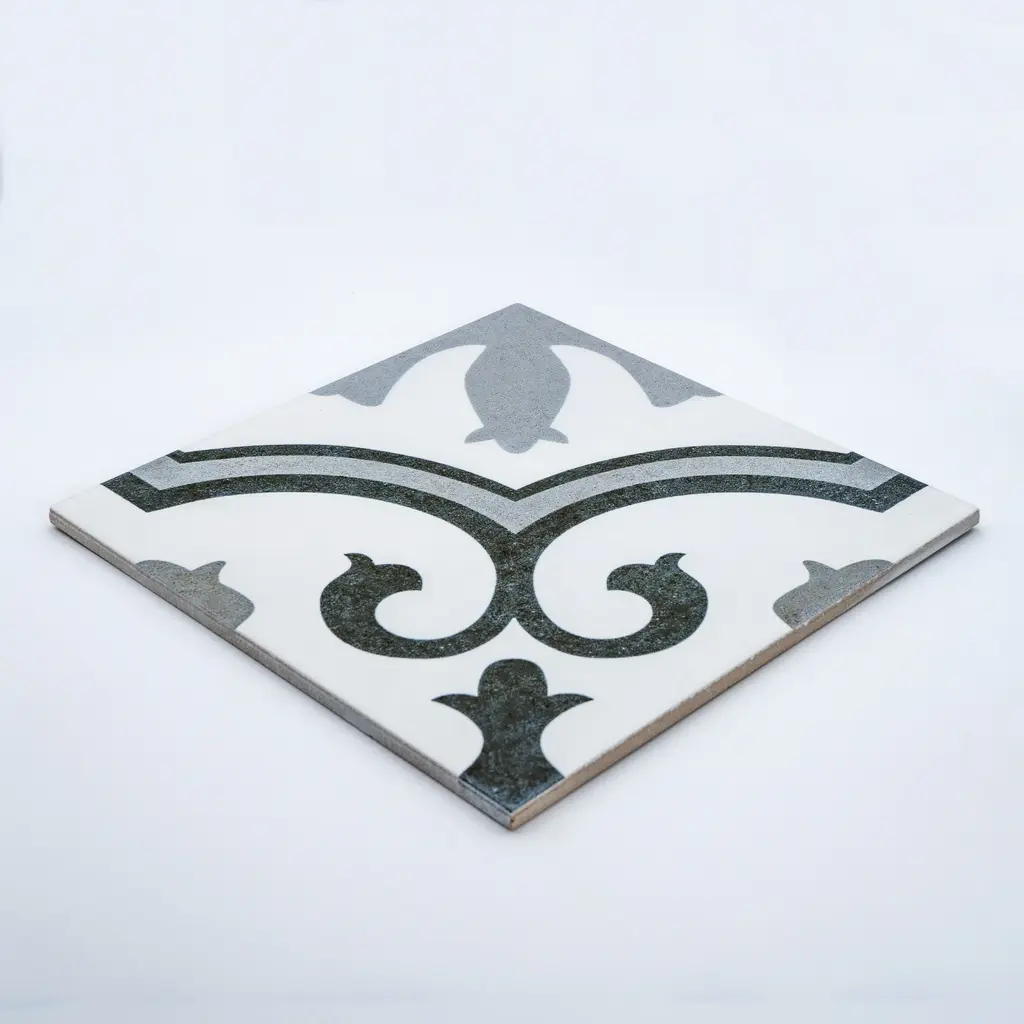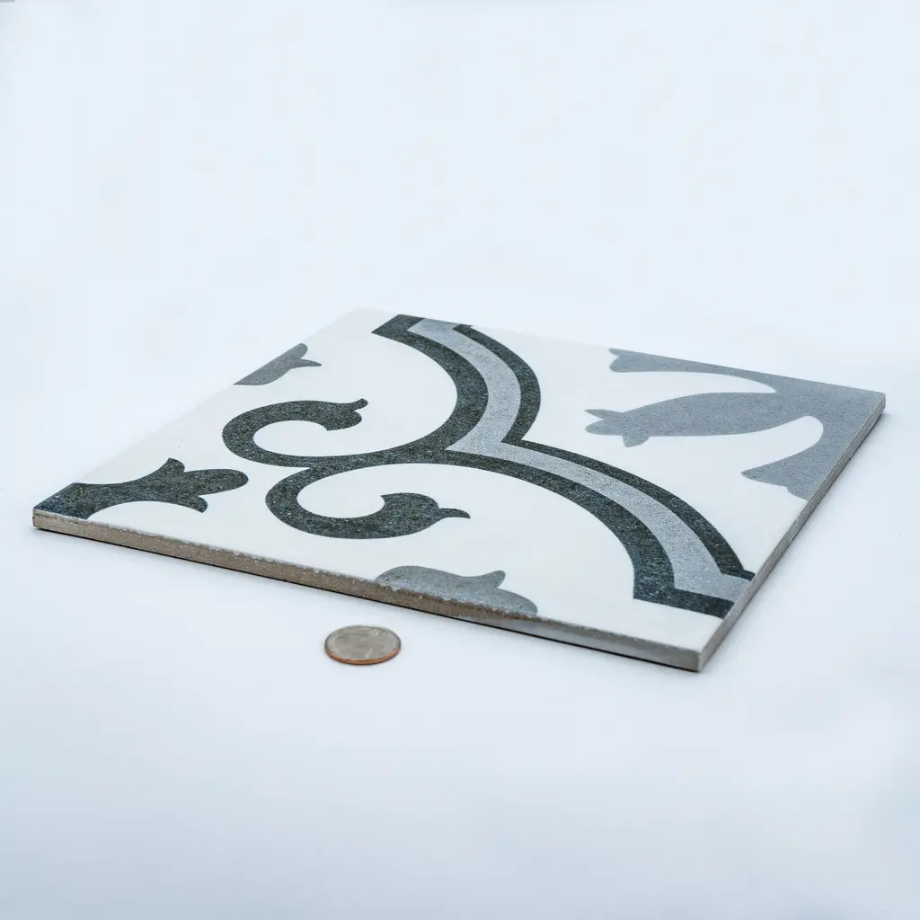This playful geometric pattern works well in both contemporary and traditional environments and can be enjoyed both indoors and outdoors for many years. This tile will add a one of a kind look to any setting. You need 4 tiles to make the full pattern.Brand: Moroccan Mosaic and Tile HouseType/style: Floor and Wall Tile Materials: CeramicDimensions: 10 inches long x 10 inches wide x 0.25 inches thick (each) Square footage per tile/ box: 0.70/tile, 12 tiles per box (8.40 sq. ft. per box) Installation: Professional installation is recommendedPack/case of: 12 tiles per box Durable, Indoors/ Outdoor, high quality materials, environmentally responsible and resource efficient, low maintenance