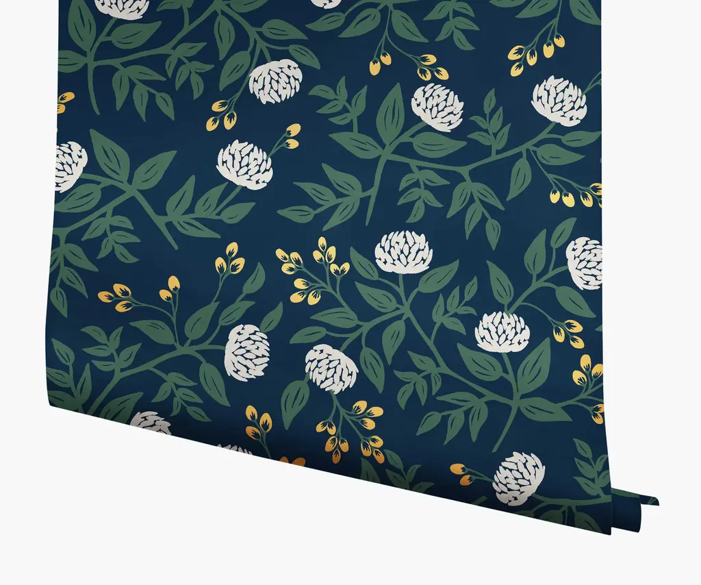 8 × 10" sample of our Peonies wallpaper. Peonies is one of the original prints in the Rifle Paper Co. repertoire. Large blooms and delicate buds are tossed on colored backgrounds for a casual, optimistic feel. Please note that wallpaper samples are cut at random, and pattern placement of the sample you receive will not match the photo featured here.
