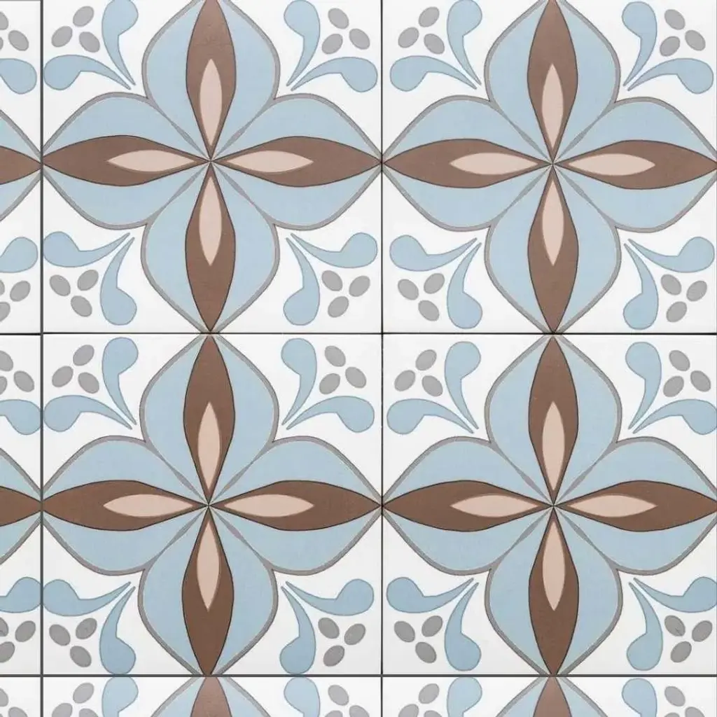 A stunning encaustic tile inspired by traditional Spanish-patterned home designs made with the intention of bringing boldness and complexity to your home. Its varying shades of blue placed on a white background are what solidify this tile as a customer favorite. The Tile Life's Petals Tile is made from sturdy porcelain that will provide you with easy upkeep. Our Petals Tile comes in a traditional matte finish, making this tile stick out as a sleek, reformed version of what an encaustic tile should be. This tile is perfect as a bathroom wall or floor, shower wall or floor, kitchen backsplash, mudroom entryway, or feature wall installation. FEATURES: DIMENSIONS: