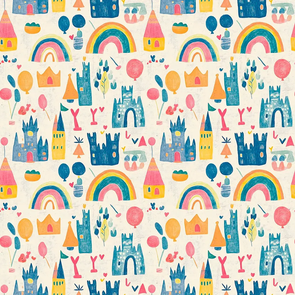 Playful Kingdom of Dreams Ignite your little one's imagination with this charming, hand-drawn wallpaper. Featuring playful castles, cheerful rainbows, and whimsical crowns on a soft cream background, its vibrant palette creates a magical atmosphere perfect for a nursery, bedroom, or playroom. You can select from a Peel and Stick Smooth or Canvas Texture Vinyl option, or choose Light Textured Peel and Stick Fabric Wallpaper or Pre-Pasted Traditional Paper. We offer a personalized touch for each order. Please provide the dimensions (height and width) of the walls you wish to cover, and we’ll assist you in calculating the number of wallpaper sheets needed for your project. We understand that managing the details can be overwhelming, but we're here to help! Each panel measures 2 feet wide by 4 to 10 feet high, so multiple panels will be required to cover an entire wall. Wallpaper Samples: We always recommend requesting a sample to assess how our wallpaper adheres to your selected surface and how the design fits within your space. Each sample is available in two formats: A full-size sample to demonstrate the scale of the print. A mini version of a complete 24”x72” sheet to provide an overview of the design pattern. Standard Wallpaper Sheet Sizes: 24" wide x 48" high / 61 cm x 122 cm 24" wide x 72" high / 61 cm x 183 cm 24" wide x 96" high / 61 cm x 244 cm 24" wide x 108" high / 61 cm x 275 cm 24" wide x 120" high / 61 cm x 305 cm Sizes outside those listed are considered custom sizes. Wallpaper sheets can be tailored to be shorter or longer to fit your space perfectly. CUSTOM SIZES and COLORS are available upon request. Please contact us, and we’ll gladly assist you! Every order includes a detailed application manual and installation guide. Panel Overlap: Our wallpaper panels feature a 1-inch overlap, in addition to the 24-inch width. We strongly recommend not removing this overlap during the installation of peel and stick wallpaper. When determining the number of panels required, please do not count the overlap, as it will be covered by the adjacent panel.
