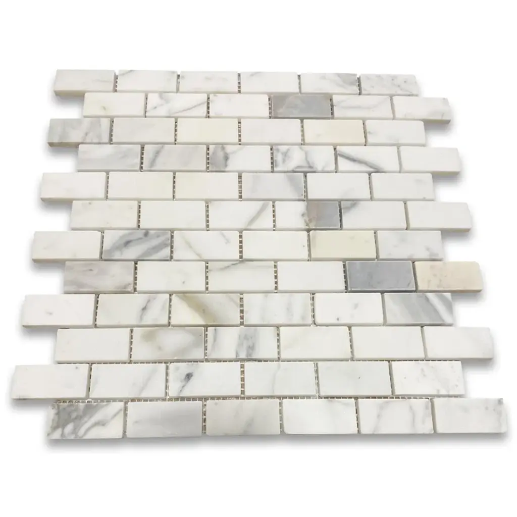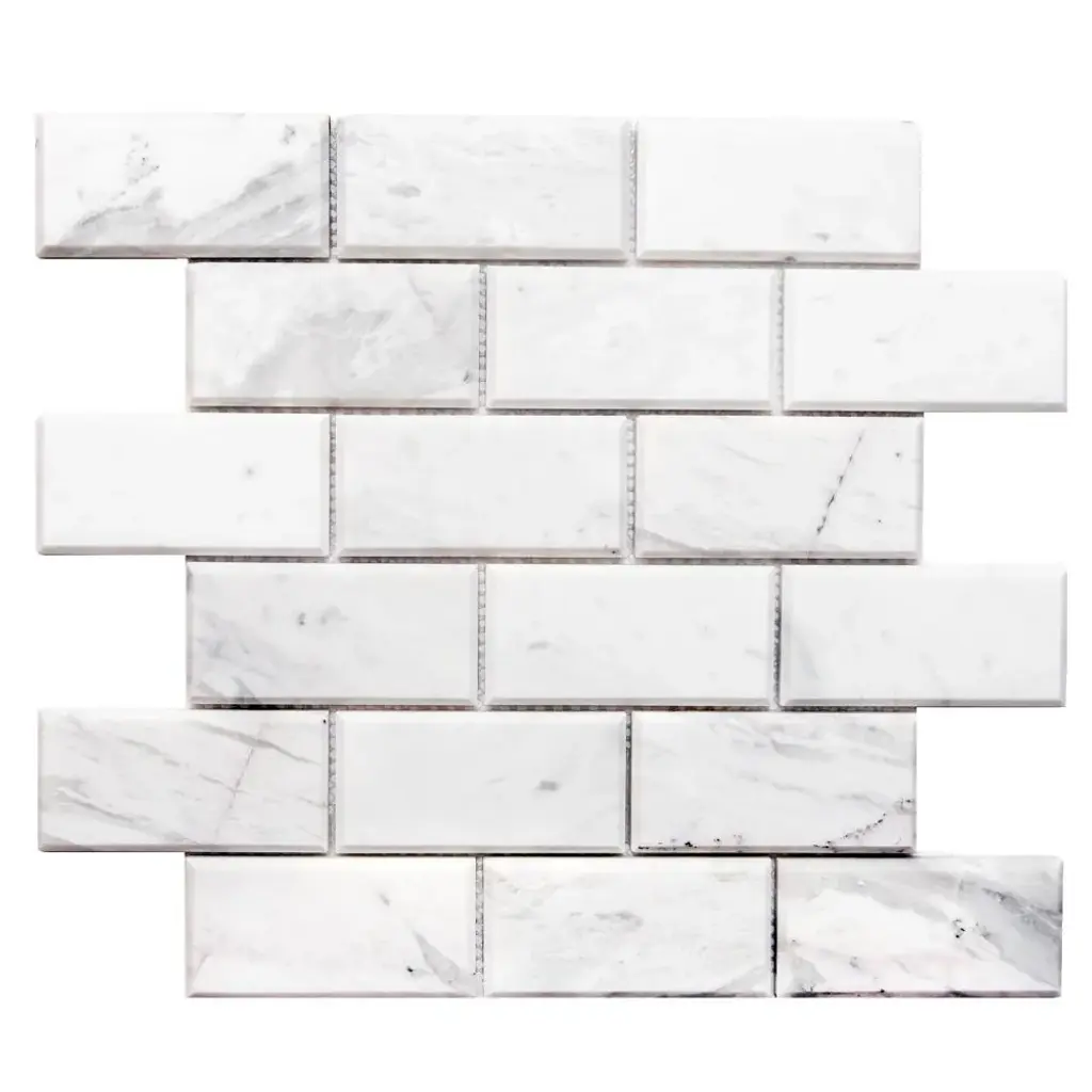 Polar Gray Marble 2''x4'' Tumbled Mosaic Tile is a natural stone mosaic. The mosaic tiles are 2x4 inches in size and have a tumbled finish, giving them a slightly textured surface and an aged appearance. The natural variations in the gray color of the tiles give the mosaic a unique, organic look that can add depth and character to any space. This mosaic is ideal for a backsplash or accent wall in a bathroom, kitchen, or other living areas. Its small tile size makes it easy to install and allows for creative design possibilities, while its natural durability makes it a low-maintenance option for high-traffic areas. Polar Gray Marble Mosaic 2x4 Tumbled is a versatile and stylish choice for anyone looking to add a natural elegance to their home.What's included?Product Details Sample Details