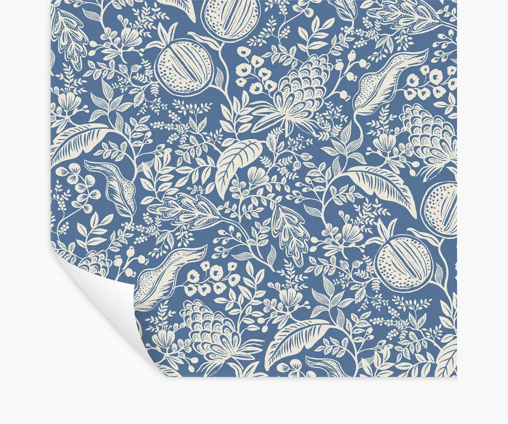 Pomegranate Peel & Stick Wallpaper Sample - Blue & Ivory