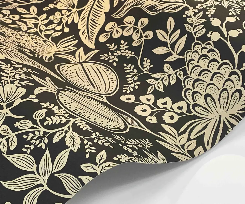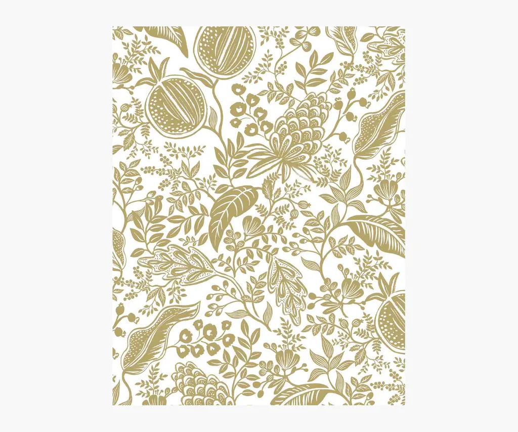 8 × 10" sample of our Pomegranate wallpaper. Luscious pomegranates are arranged in a canopy of tropical foliage and presented in two-color prints that feel elevated and modern. This wallpaper is screen printed and comes in 27 inch rolls with a 25.25 inch repeat. Please note that wallpaper samples are cut at random, and pattern placement of the sample you receive will not match the photo featured here.