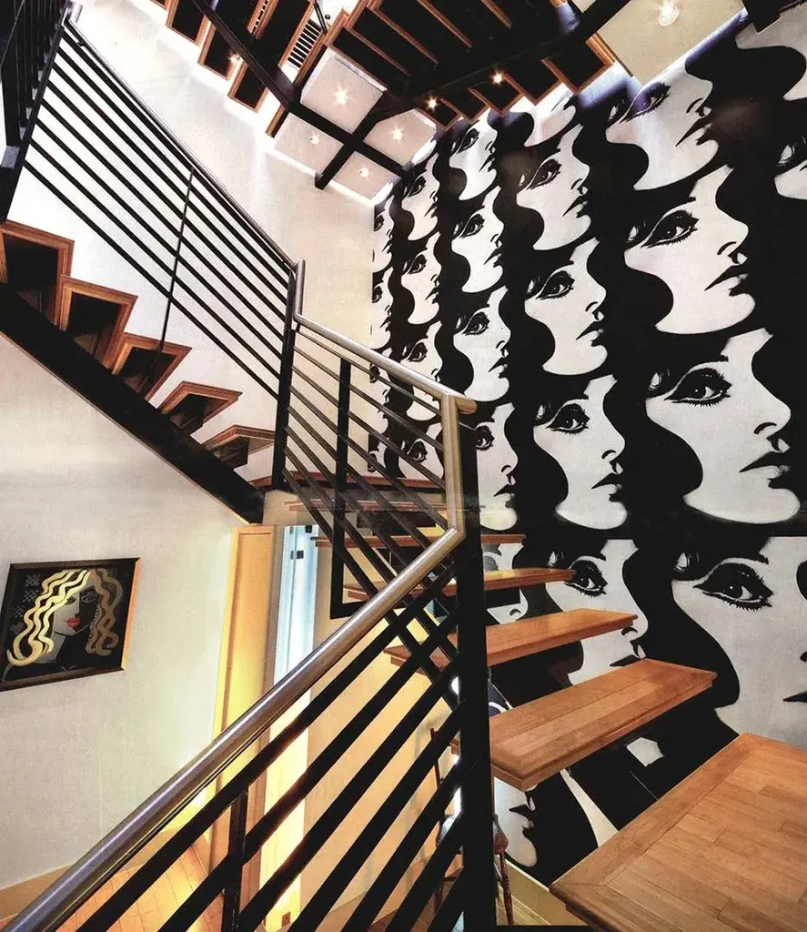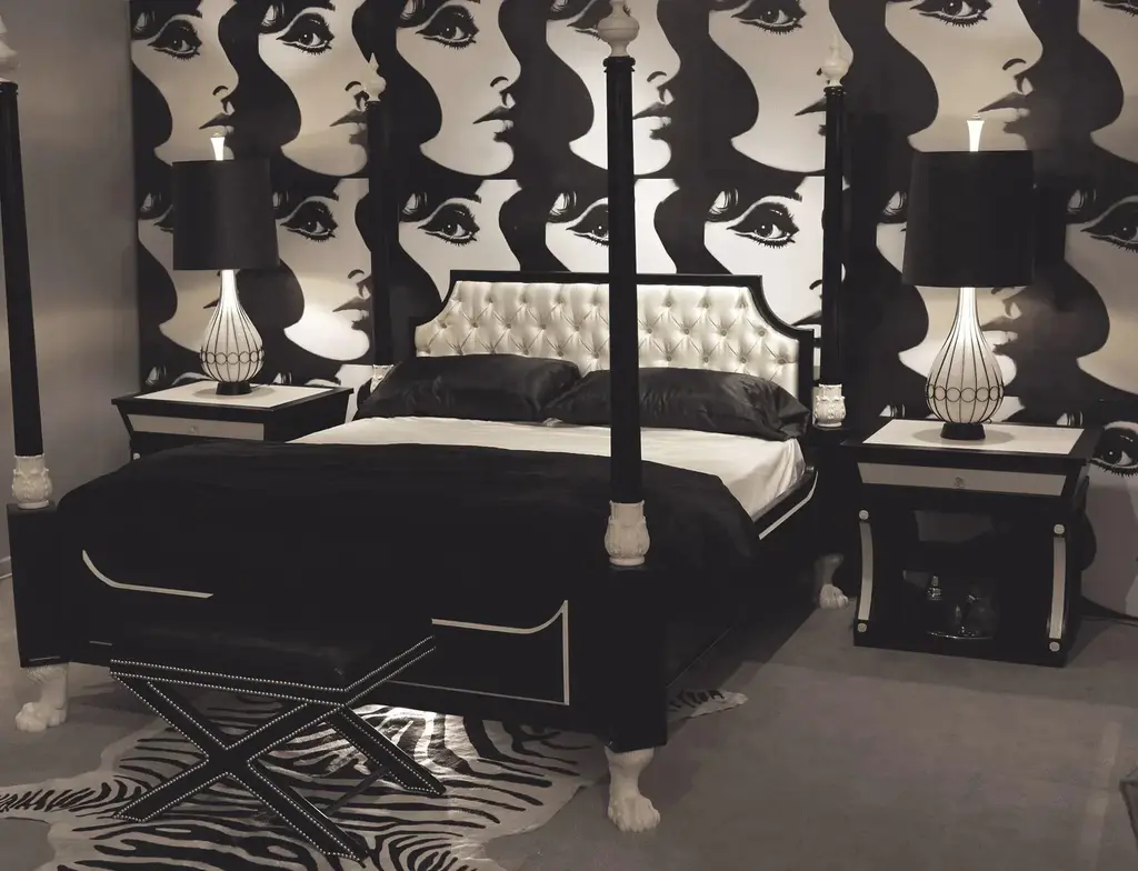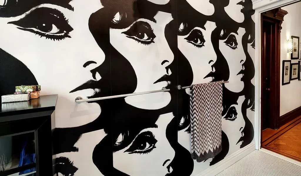 Bold Black and White face pattern that was introduced by Phyllis Morris in the 1960s, and created by Los Angeles artist Robert Pritchard. This bold graphic imagery makes a dramatic statement wherever it is used- from residential to hospitality to retail settings. 8" x 10" Sample of paper that can be ordered by the roll with self-adhesive or standard non-stick backing.