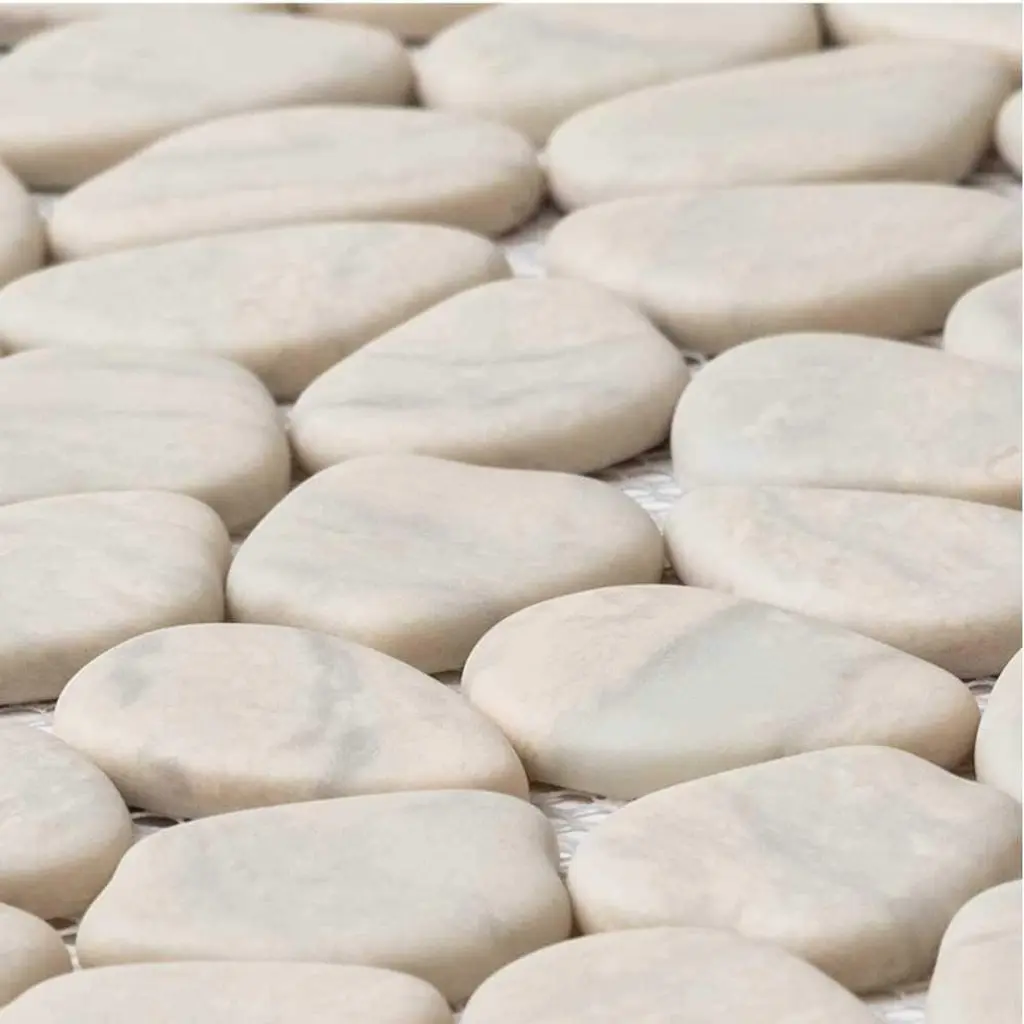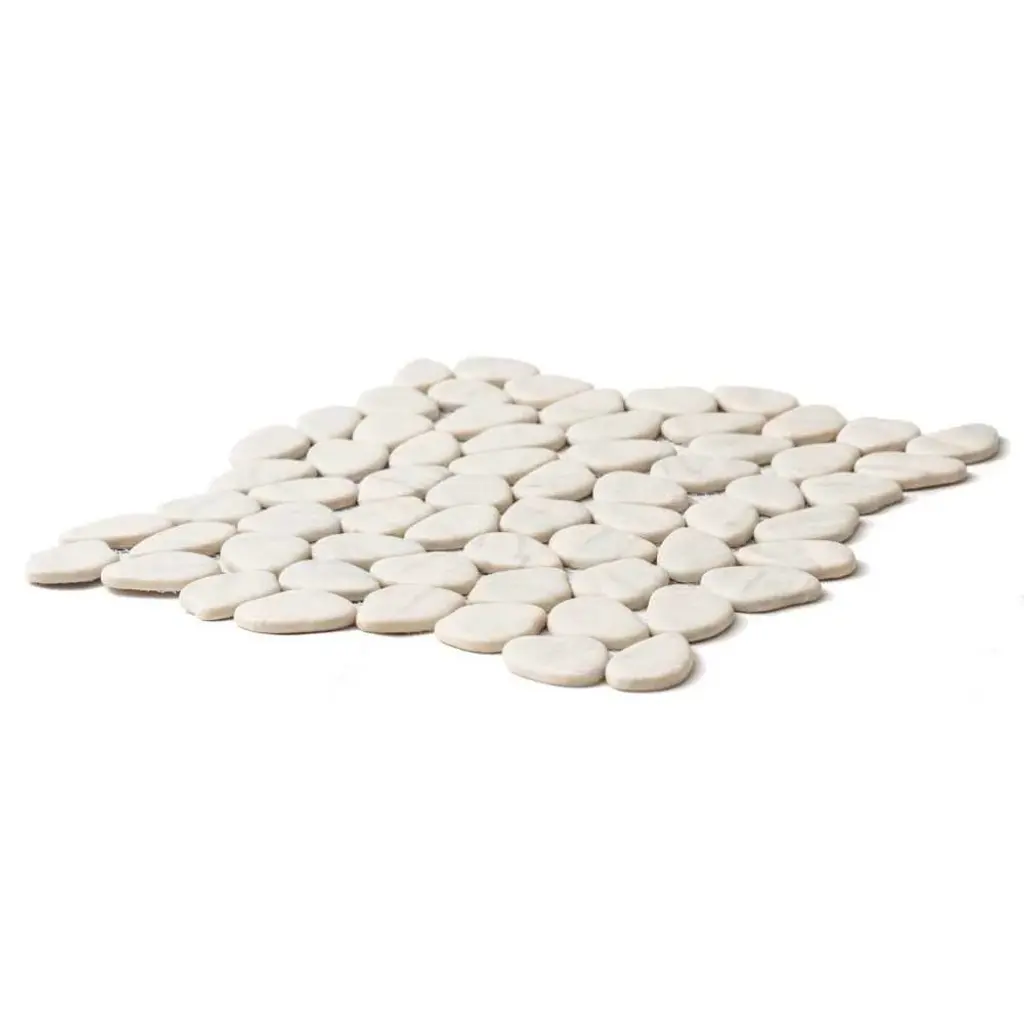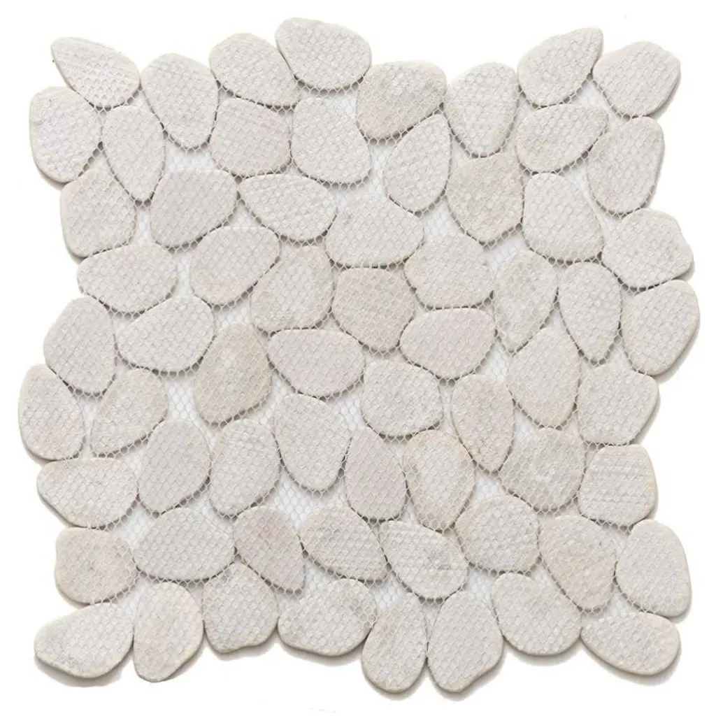 Inspired by The Tile Life Glass Collections, the Recycled Cenote Pebble installations bring you one step closer to the most modern glass kitchen, bathroom, and living room tile decorations. FEATURES: Glass tile for flooring and wall applications Glass pebbles and rocks mosaic tile Mesh backed Impervious and waterproof V3 Moderate variation PEI 2 Matte glass Easy to install 13" x 13" pebbles/ rocks glass tiles Ideal for backsplash, bathroom, shower, floor, wall Recycled Cenote Pebble is offered in Smoke, Blanco, Blend, Charcoal, Crema, Graphite, and Ocean DIMENSIONS: Mosaic sheet: 12.75-inch x 12.75-inch Overall product weight: 57.75 lb. Surface area per carton: 14 square feet