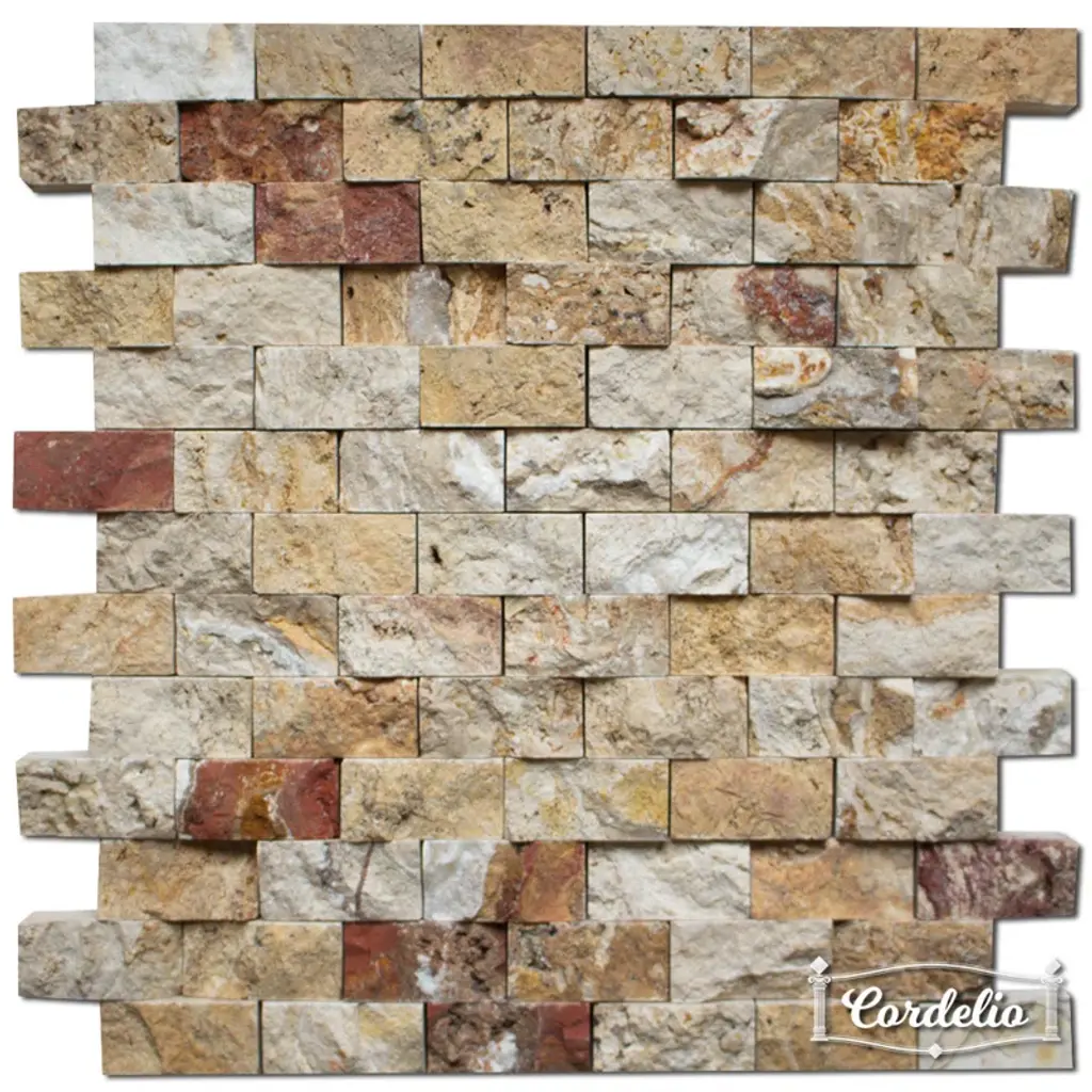 Rustic Desert 2''x4'' Split Face Mosaic is a type of natural stone tile that features a unique split-face texture. The tile is made from a blend of scabos colors and has a rough, uneven surface that adds depth and character to any installation. Each tile measures 2 inches by 4 inches and is arranged in a mosaic pattern, creating a visually stunning design that is perfect for accent walls, fireplace surrounds, and other similar applications. The irregular texture of the tiles creates a rustic, earthy feel that is both inviting and sophisticated. As a natural stone, each tile has its own unique color and texture variations, making each installation truly one-of-a-kind. Rustic Desert 2''x4'' Split Face Mosaic is durable, easy to maintain, and suitable for both indoor and outdoor use.What's included?Product Details Sample Details