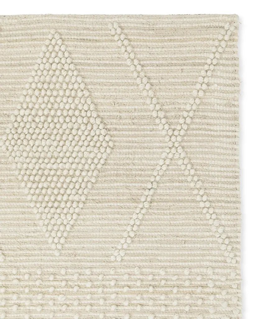 Abundant texture. Quiet color. Tufted and woven by hand in a subtle geometric.