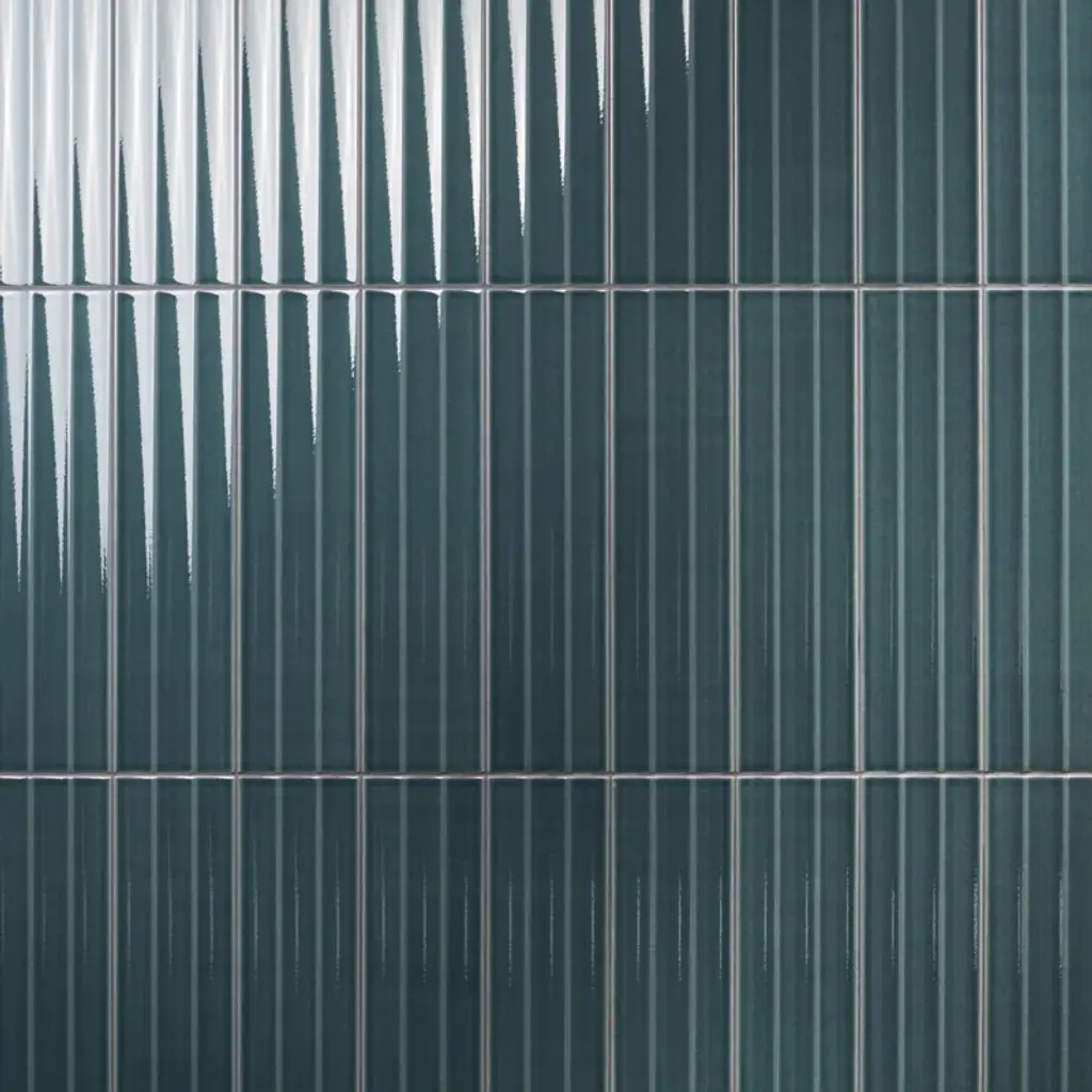 The Sakura Fluted collection is a 4.5" x 9" wall tile with a distinct three-dimensional fluted surface, offering a clean, modern texture. Made in Spain, these tiles come in nine colors: from subtle neutrals to bold, saturated tones. This range gives you options for any space, whether understated or expressive.Each tile features a soft watercolor effect. Color gently pools and fades across the surface, creating natural variation and a hand-finished look. This subtle detail adds character without overwhelming the design.With its sculpted form and wide color palette, Sakura Fluted suits a variety of interiors — from kitchens and bathrooms to accent walls and entryways. FEATURES: A case of this product includes 24 pieces and covers 6.86 square feet Porcelain, singular, patterned, fluted, rectangle, glossy, pressed edge wall tile Impervious and waterproof; Withstands sun and rain Glossy finish with a shade 1 rating/ variation - V1 uniform appearance 4.5" x 9" fluted wall tile made from durable porcelain Suitable for indoor walls and rated for pool use Glossy finish adds light reflection and depth Made in Spain Available in nine colors, from neutrals to bold tones Watercolor-style glaze creates natural variation across each tile Ideal for bathrooms, kitchens, accent walls, and outdoor water features DIMENSIONS: Individual tile size: 4.5 inches x 9 inches Sample tile size: 4 inches x 4 inches Surface area per carton: 6.86 square feet