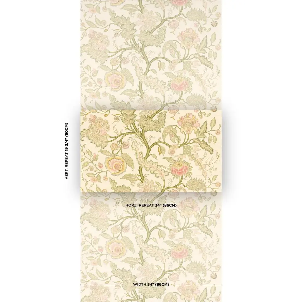 This traditional tree of life design derives from an antique French indienne print, reinterpreted to suit today's rooms. Also available as a fabric and a flat paper. Sold As: 8 Yard Minimum HOR 34.0" Match: Straight VERT 19.75"