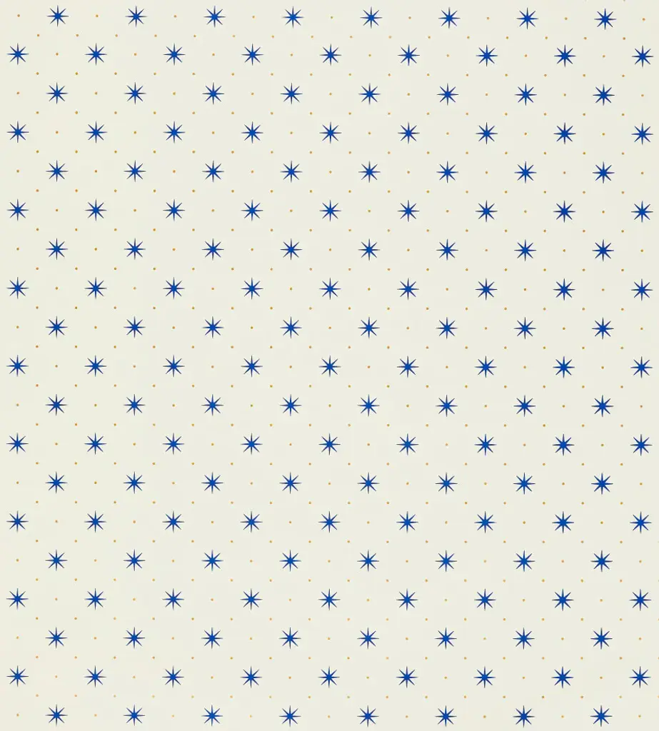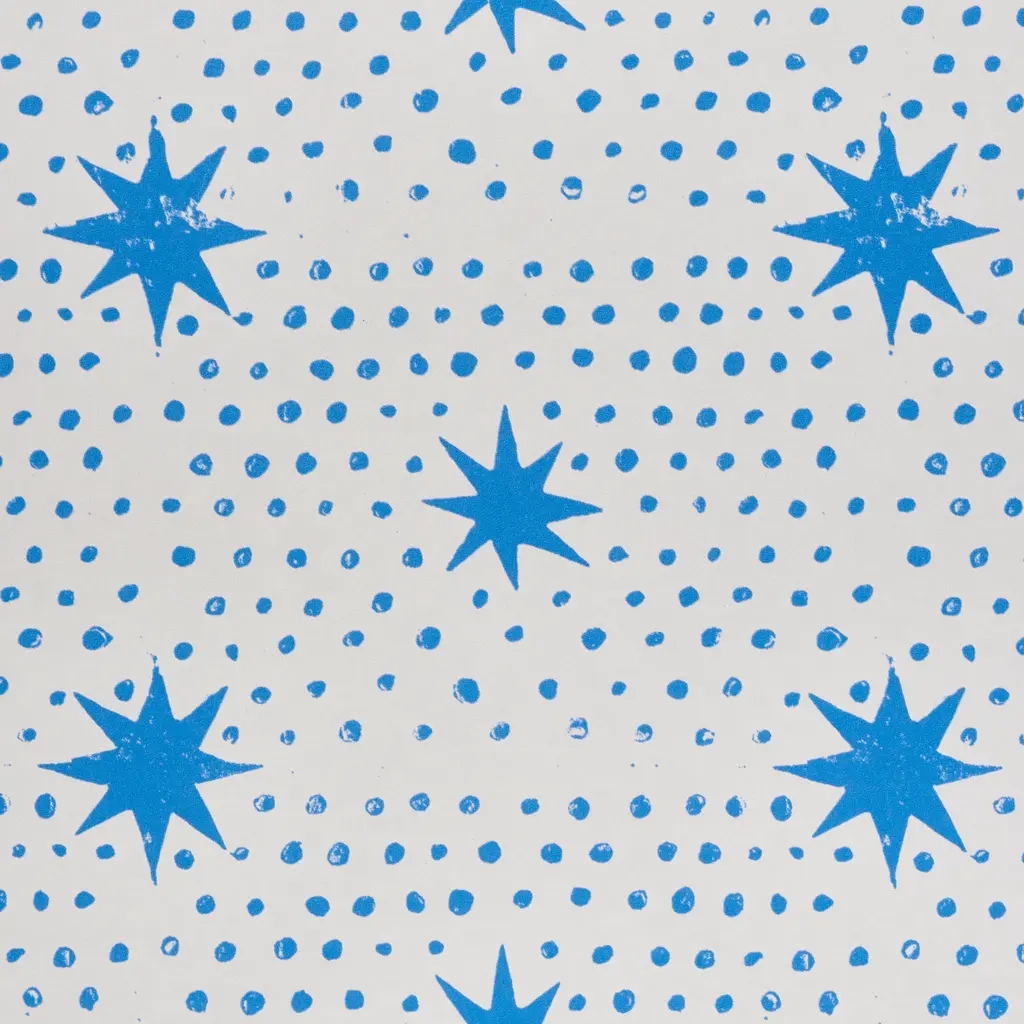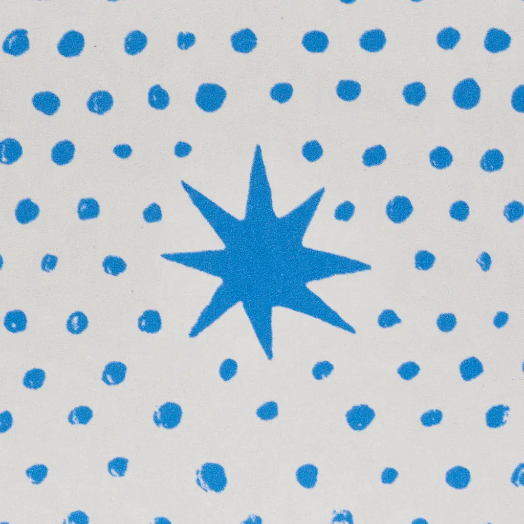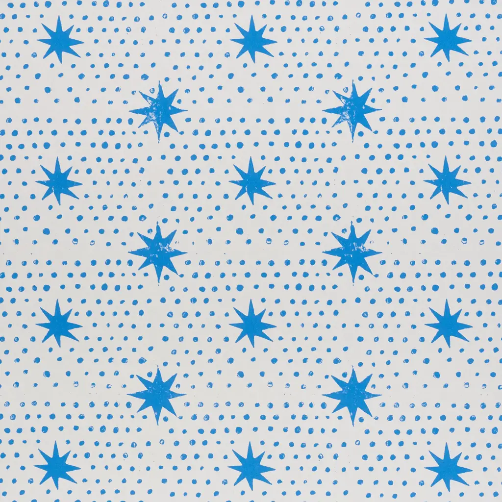 This listing is for a wallpaper sample only. If you'd like to purchase this wallpaper, please click here: Inspired by the Renaissance artist Giotto, this enchanting dot and star design from artist Molly Mahon recalls the heavens in a charming block-print style. Since Schumacher was founded in 1889, our family-owned company has been synonymous with style, taste, and innovation. A passion for luxury and an unwavering commitment to beauty are woven into everything we do. Wallcoverings Product Details Schumacher Collection: Molly Mahon Product Name: Spot & Star Color: Blue Measurements Length: 288 in Width: 21 in Total Square Footage: 42 sq. ft Match Type: Straight Horizontal Repeat: 7 in Vertical Repeat: 15 in Care: Wipe down with dry cloth. Country of Finish: United States of America