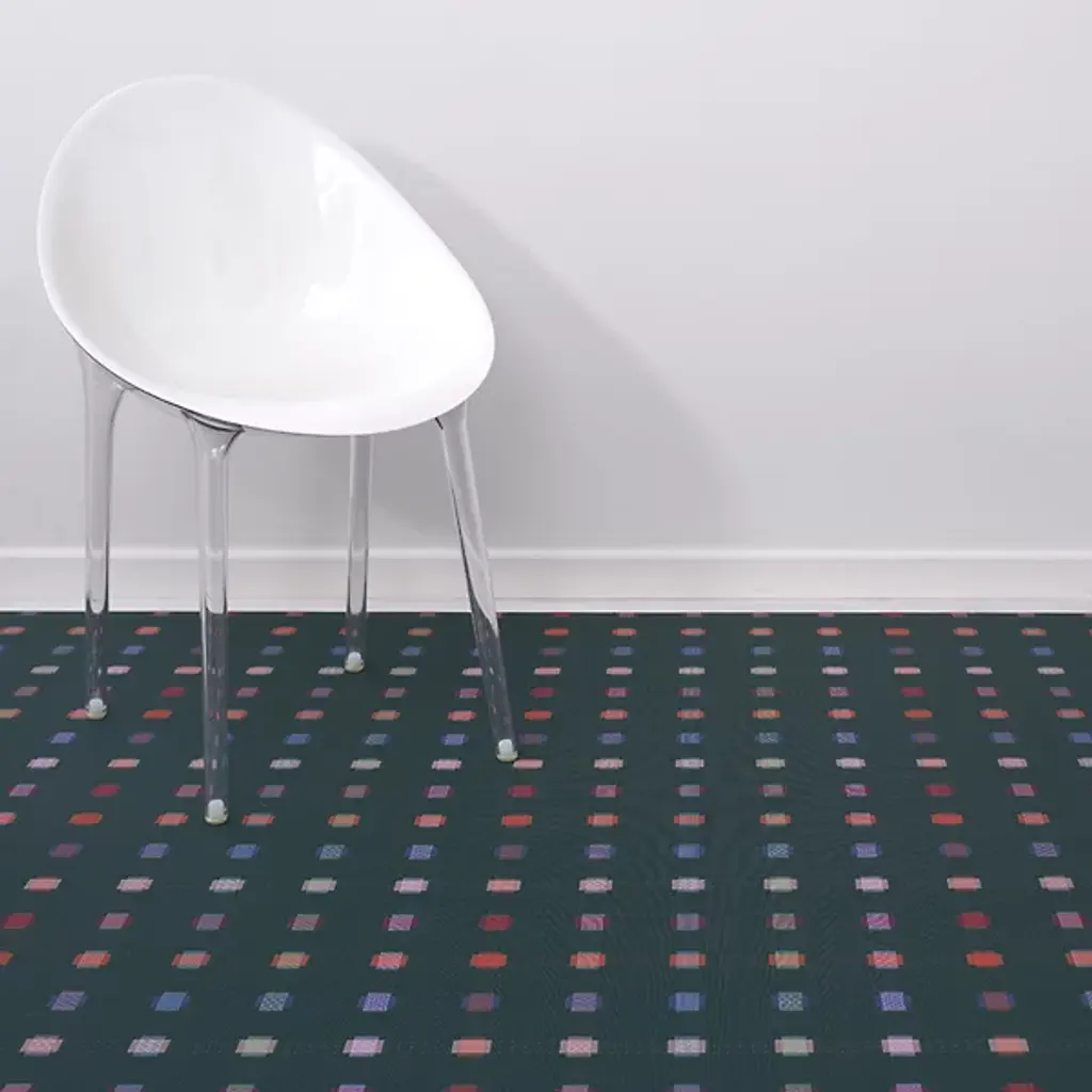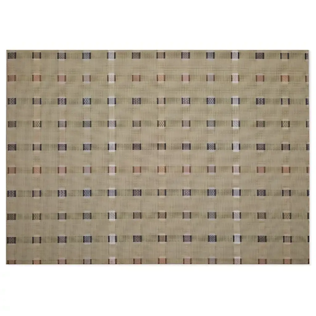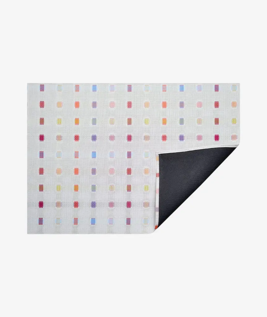 The Sampler Rug from Chilewich adds a bold touch with its vibrant multicolor rectangles, contrasting sharply against its single-color background. Designed by Sandy Chilewich, this durable rug is made from phthalate-free TerraStrand yarns and Microban. The combination of vinyl and polyester ensures durability and easy upkeep, making it a stylish and resilient addition to any contemporary setting.