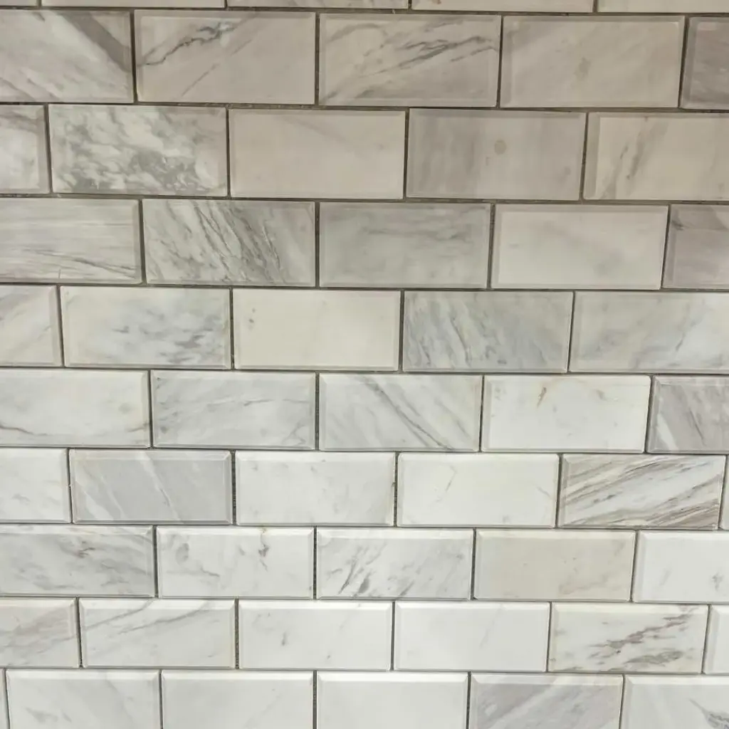 Santorini Beveled 2" X 4" Brick Marble Backsplash Wall Tile - 4 X 4 Sample - Wooden White