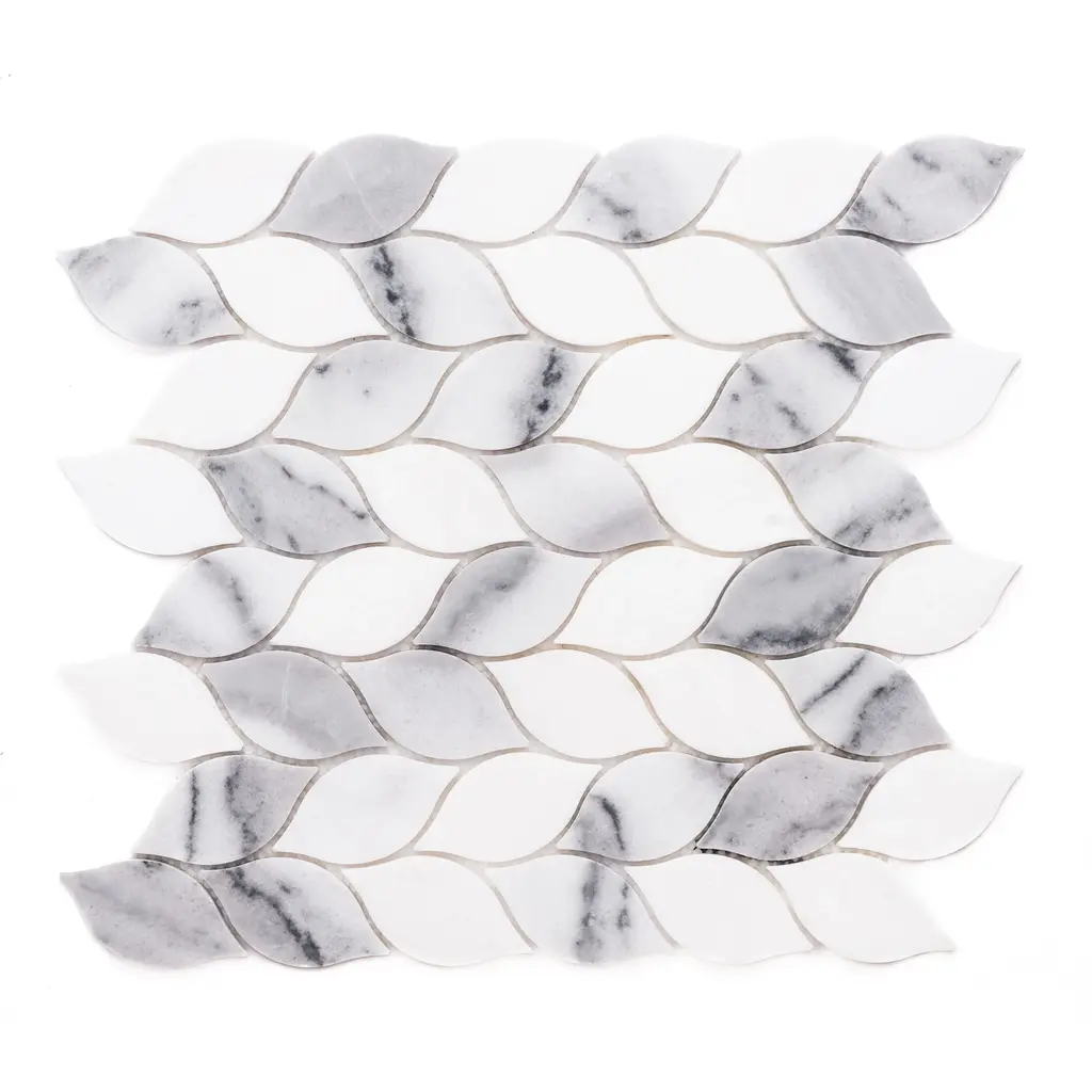 Ditch your classic marble and opt for our beautiful braid design. Our Santorini Braid Marble Mosaic showcases a beautiful, chained pattern in a universally appealing gray/white color format. This tile's subtle color palette allows it to be utilized in countless spaces while its unique design forges a strong emotional reaction among viewers. Our Santorini Braid Mosaic was meant to be the focal point in any room. The Santorini Braid Mosaic comes in a traditional Polish finish, giving off a captivating gloss. FEATURES: DIMENSIONS:
