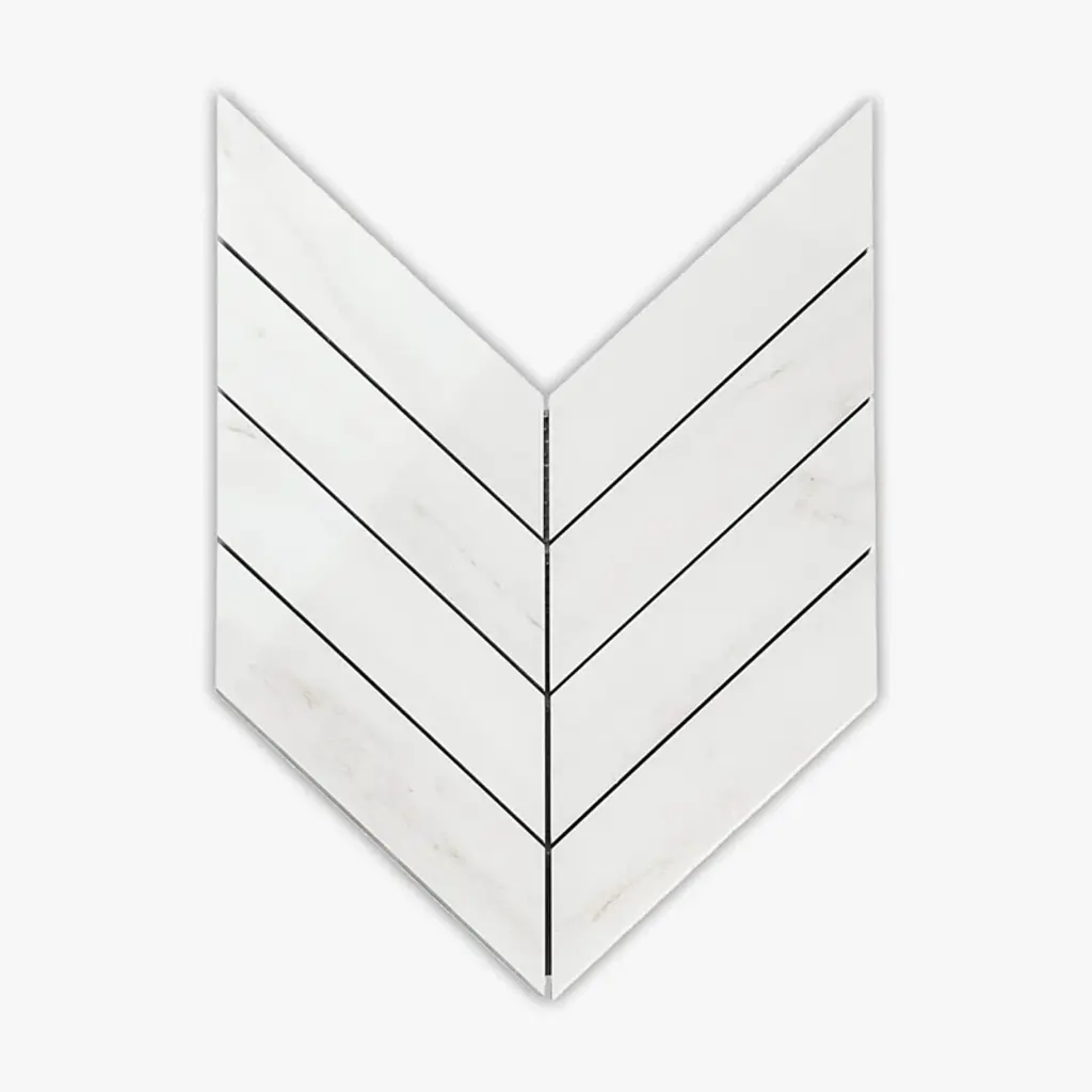 Slatewood Marble 0.8"x4.75" Chevron Honed Mosaic Tile is a type of mosaic tile made from natural stone. The tiles are cut in a chevron pattern and measure 0.8 inches by 4.75 inches each. The color of the tiles is a muted gray with subtle variations, giving them a natural wood-like appearance. The surface of the tiles has been honed to create a smooth, matte finish. This type of mosaic tile is commonly used in interior design for walls and backsplashes, as it adds texture and visual interest to any space.What's included?Product Details Sample Details