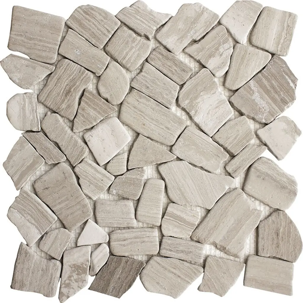 Add a touch of rustic charm to your space with Slatewood Marble Puzzle Tumbled Mosaic Tile. This unique tile features a puzzle-like pattern in shades of gray, resembling the natural beauty of wood. Made from tumbled stone, each irregular puzzle piece adds a worn-in, vintage feel to your design. Whether you're renovating your home or updating a commercial space, this tile is perfect for creating a modern yet timeless look. Use it on shower floors, feature walls, or as a kitchen backsplash to add visual interest and texture to any space.Features:Product Details: