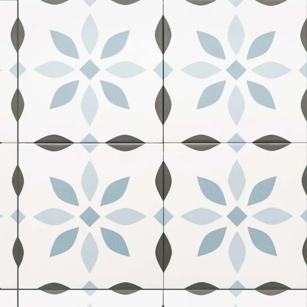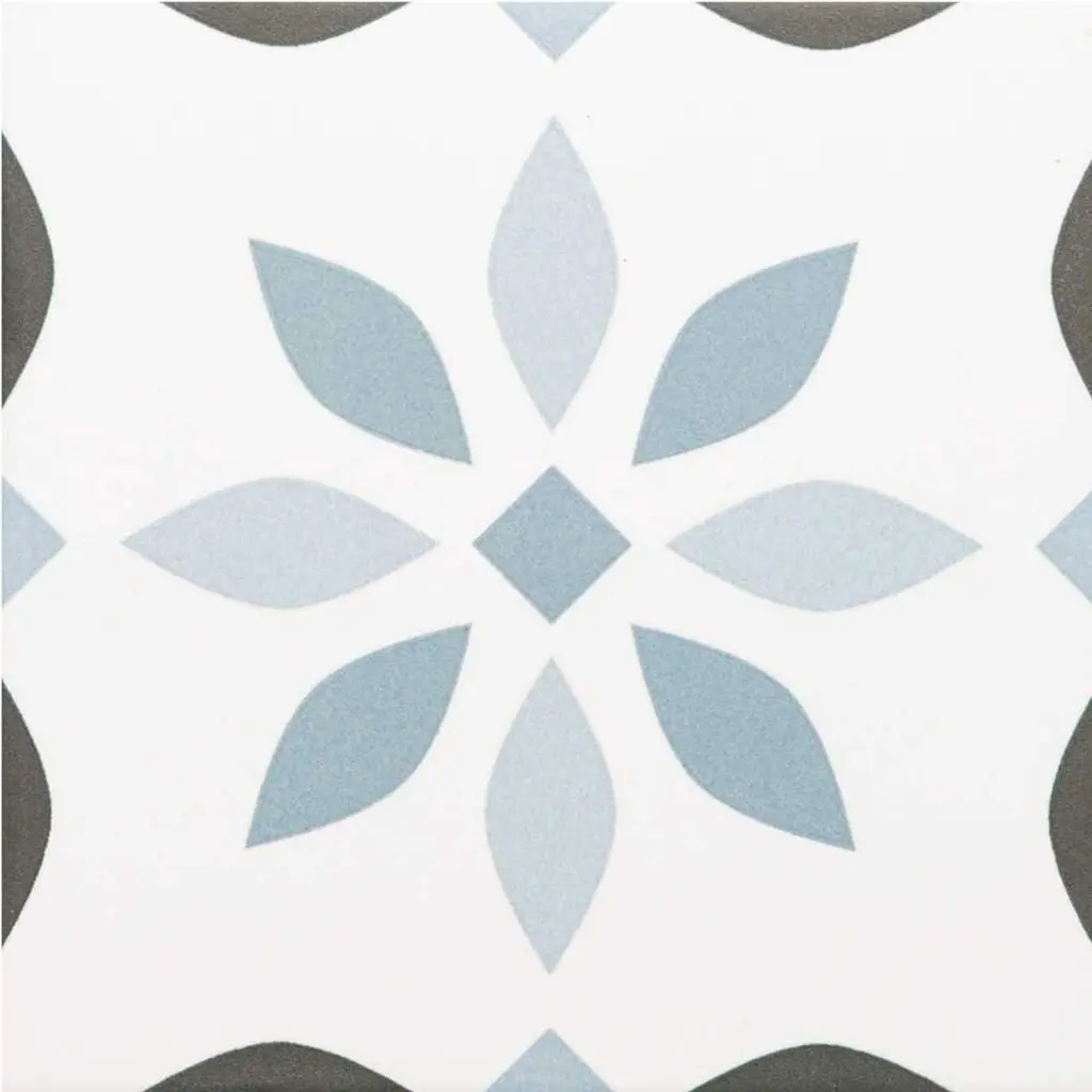 A stunning encaustic tile inspired by tradition Spanish patterned home designs made with the intention of bringing boldness and complexity to your home. Its varying shades of blue placed on a white background are what solidifies this tile as a customer favorite. The Tile Life's Snowflakes Porcelain Tile is made from a sturdy porcelain that will provide you with an easy upkeep. Our Snowflakes Tile comes in a traditional matte finish, making this tile stick out as a sleek reformed version of what an encaustic tile should be. This tile is perfect as a bathroom wall or floor, shower wall or floor, kitchen backsplash, mudroom entryway, or feature wall installation.FEATURES:DIMENSIONS: