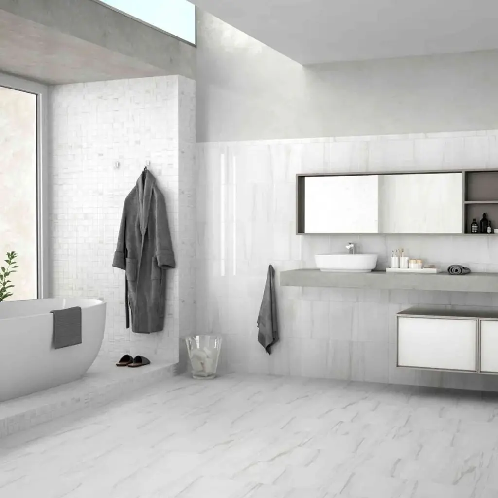 Transform any residential or commercial bathroom with a timeless tile. This Dolomite marble look is a perfect complement to any contemporary or classic aesthetic. Soho incorporates a distinctive personal signature with a wide variety of designs and sizes/finishes. Use our matching trim and mosaics for any combination of tiles to achieve the design that best suits your project. The Tile Life's Soho 13 inches x 13 inches Porcelain Tile is perfect for backsplashes, bathrooms, showers, kitchens, floors, and walls. Approved for both residential and commercial indoor installations, it's available in three timeless colors: Beige, Silver, and White. FEATURES:DIMENSIONS: