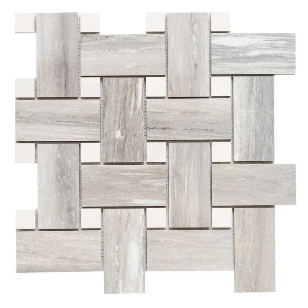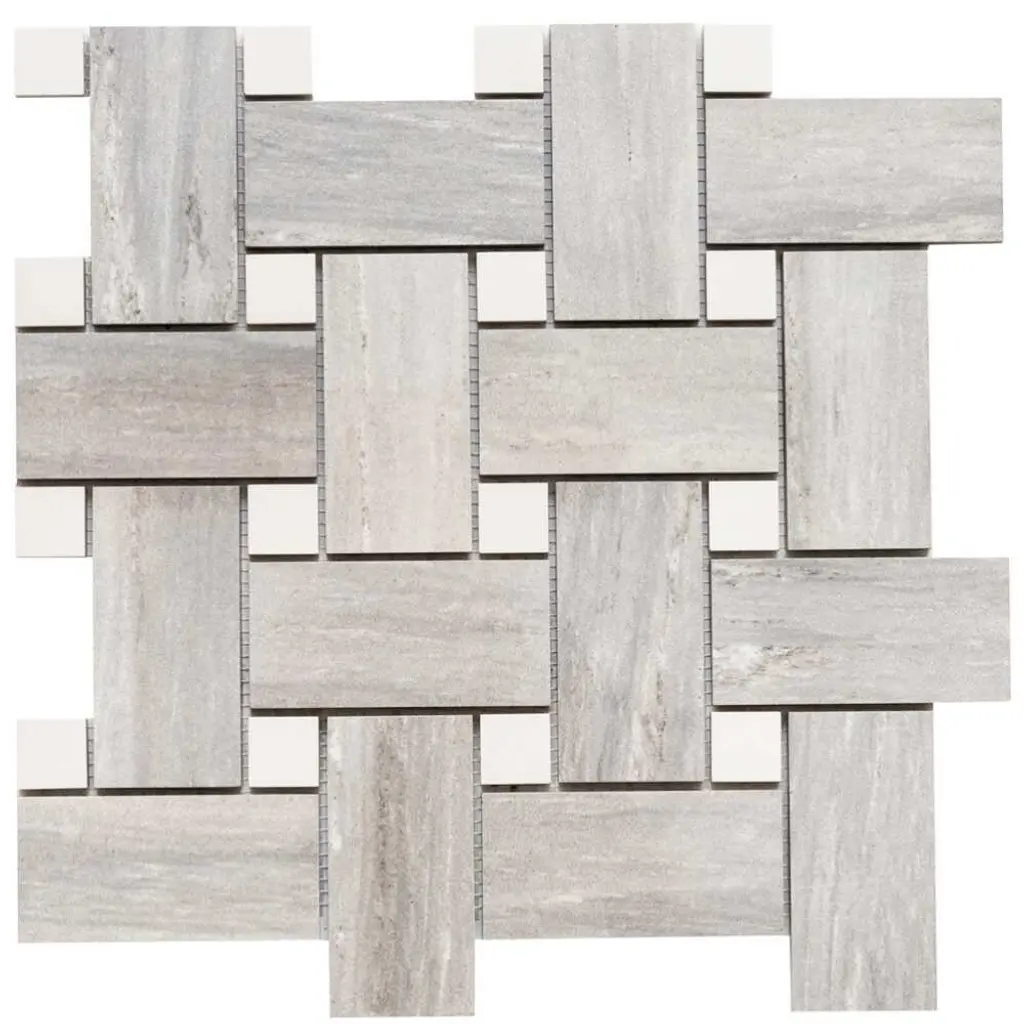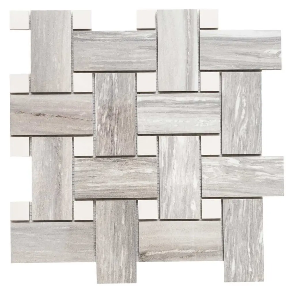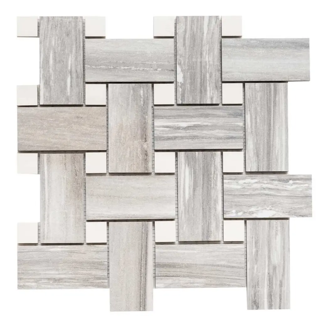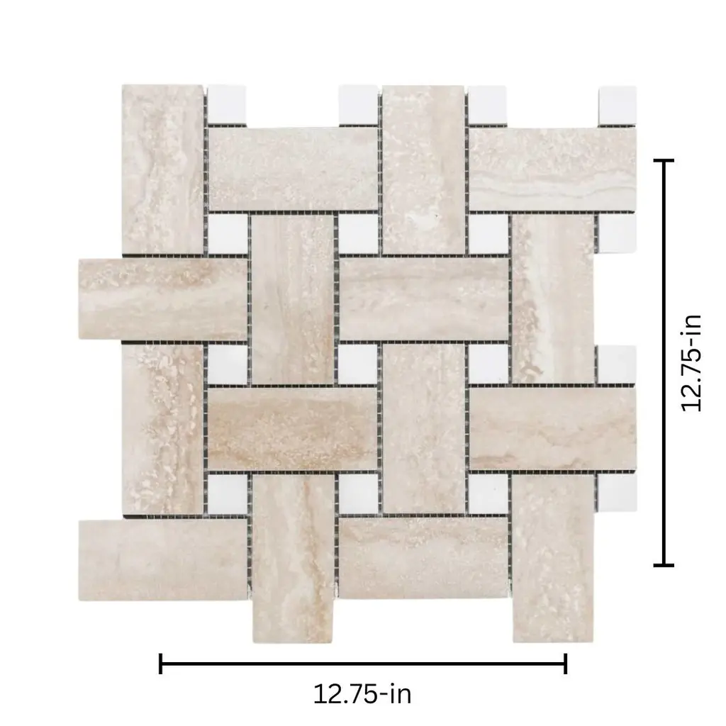 The Tile Life's Stately Basketweave Porcelain Tile is an upgraded version of a long-time homeowner's favorite. This seamlessly interlocked basketweave design will stun your guests as it delivers the beautiful finish of marble and the intriguing braided pattern of basketweave. Our Stately Basketweave line comes in three neutral color-based tiles that tie any room together with minimal effort. Its porcelain material makes it perfect for any timeless kitchen backsplash, traditional flooring design, classic living room, or upscale mudroom. Offered in three timeless color options—Calacatta, Travertine, and Pearl Attraction—this mosaic tile is approved for residential and commercial indoor installations, making it a versatile choice for both traditional and modern interiors. FEATURES:DIMENSIONS: