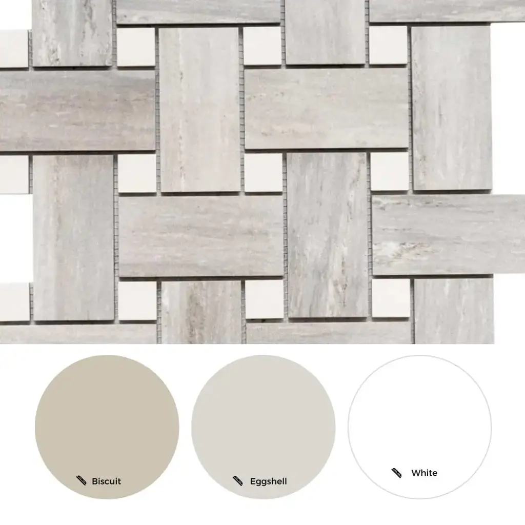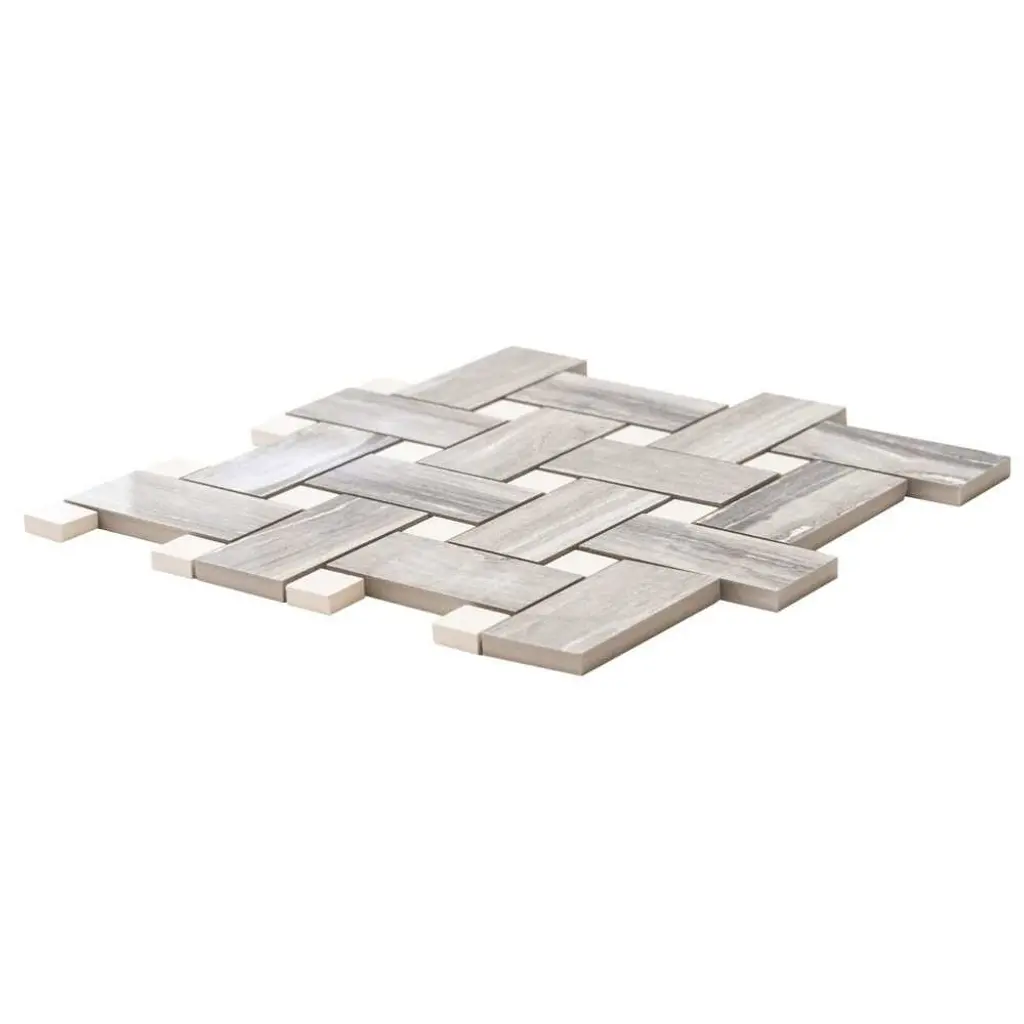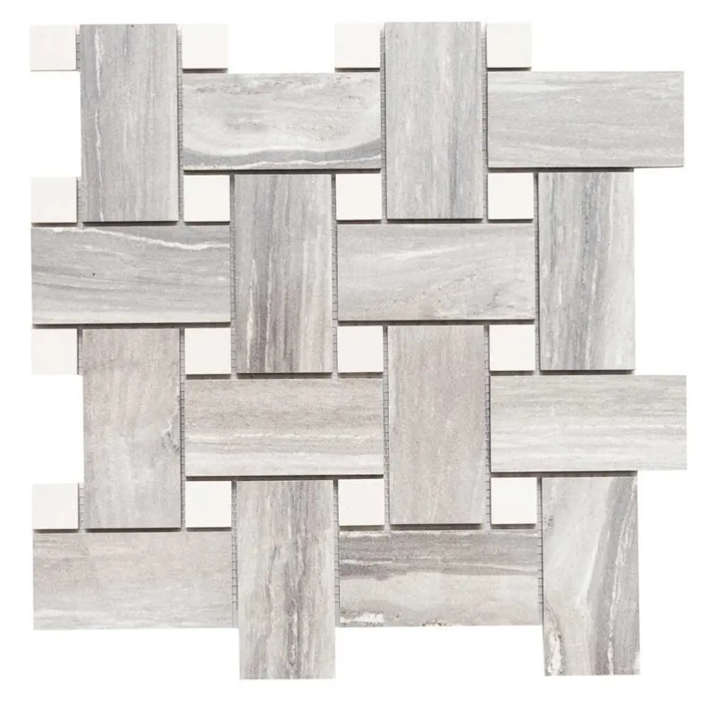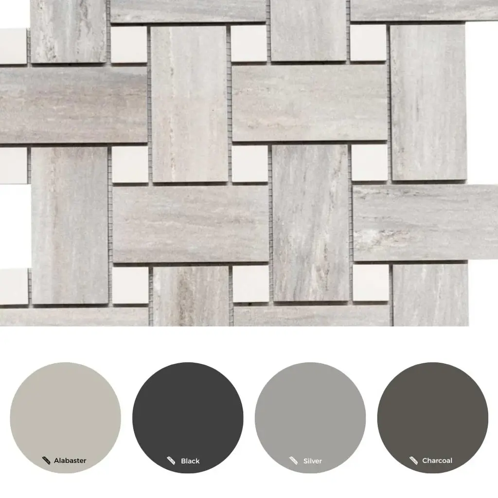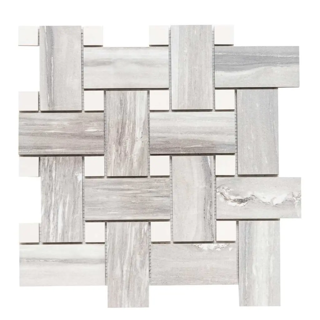 The Tile Life's Stately Basketweave Porcelain Tile is an upgraded version of a long-time homeowner's favorite. This seamlessly interlocked basketweave design will stun your guests as it delivers the beautiful finish of marble and the intriguing braided pattern of basketweave. Our Stately Basketweave line comes in three neutral color-based tiles that tie any room together with minimal effort. Its porcelain material makes it perfect for any timeless kitchen backsplash, traditional flooring design, classic living room, or upscale mudroom. Offered in three timeless color options—Calacatta, Travertine, and Pearl Attraction—this mosaic tile is approved for residential and commercial indoor installations, making it a versatile choice for both traditional and modern interiors. FEATURES:DIMENSIONS: