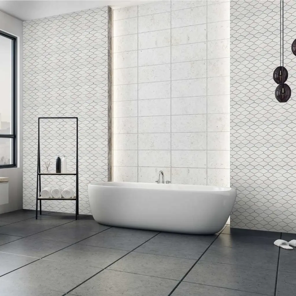 The Tile Life's Stately Elongated Hex tile is a sophisticated take on the classic hexagon tile. Artfully crafted from quality porcelain, this tile's elongated pattern plays with geometry and dimension in any space you put it in. Stately Elongated Hex is a beautiful example of everything a marble look tile should be. Impress your guests by using this tile as a statement piece or a focal point for your bathroom, kitchen, living room, or entryway. FEATURES: DIMENSIONS: