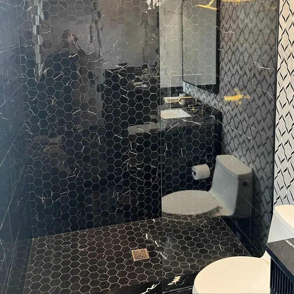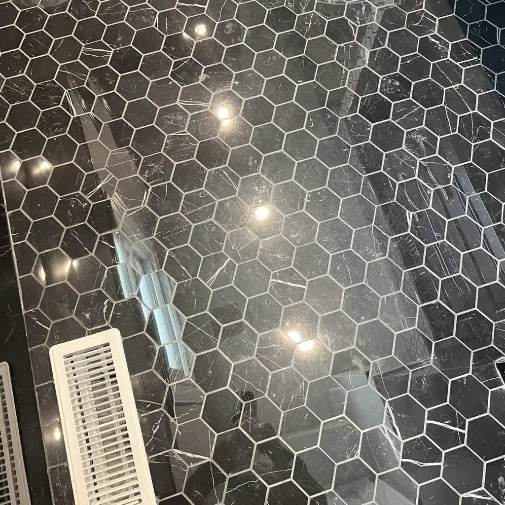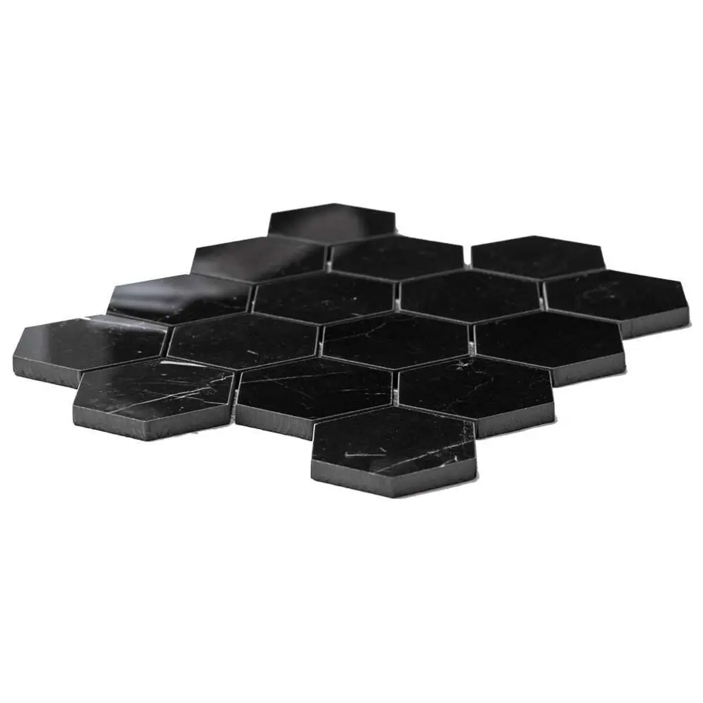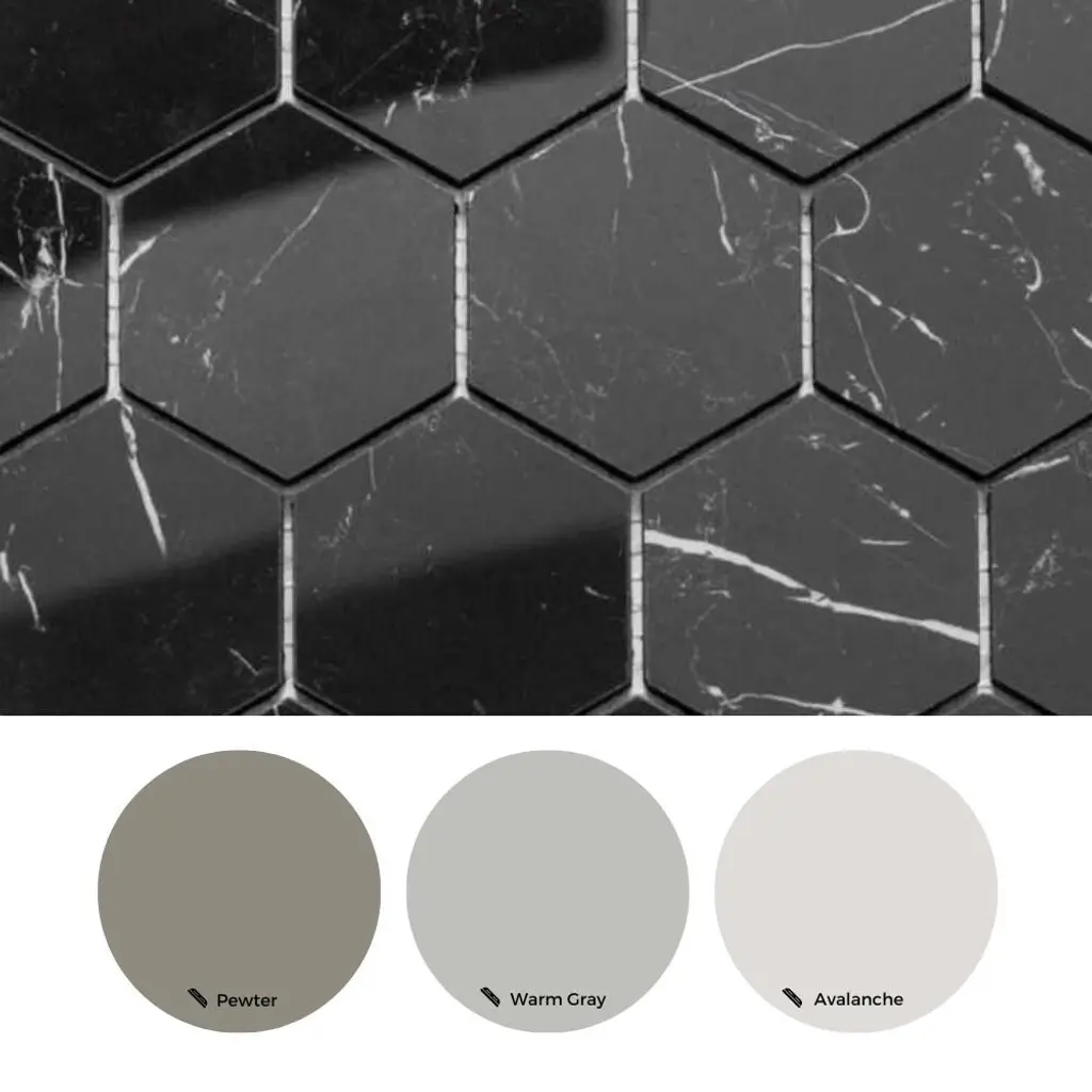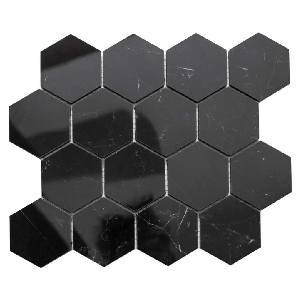 The Tile Life's Stately Hex line is a versatile choice for both classic and contemporary preferences. Our Stately Hex line includes three neutral colors, allowing endless accent color combinations and inspiring creativity in modern designers. Natural veins run through each sheet of tile, creating a unique, different variation on each tile. Place these tiles in any living room, bathroom, kitchen, or foyer for a fun, modern look. The Tile Life's Stately Hex Tile Collection is ideal for backsplashes, bathrooms, showers, kitchens, fireplace surrounds, floors, and walls, these stylish hexagonal tiles offer both beauty and versatility. Available in three sophisticated marble-inspired colors—Pearl Attraction, Nero Marquina, and Calacatta—Stately Hex adds a refined touch to any design. FEATURES: DIMENSIONS: