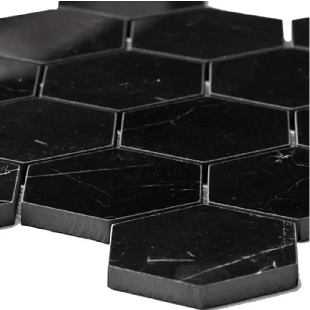 Stately Hex 11" X 14" Nero Marquina Porcelain Floor And Wall Tile - 4 X 4 Sample