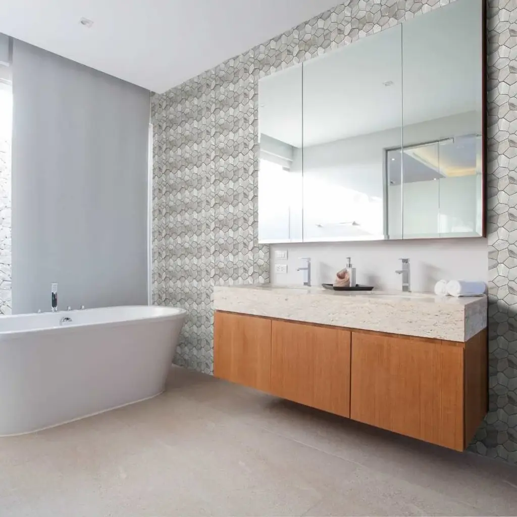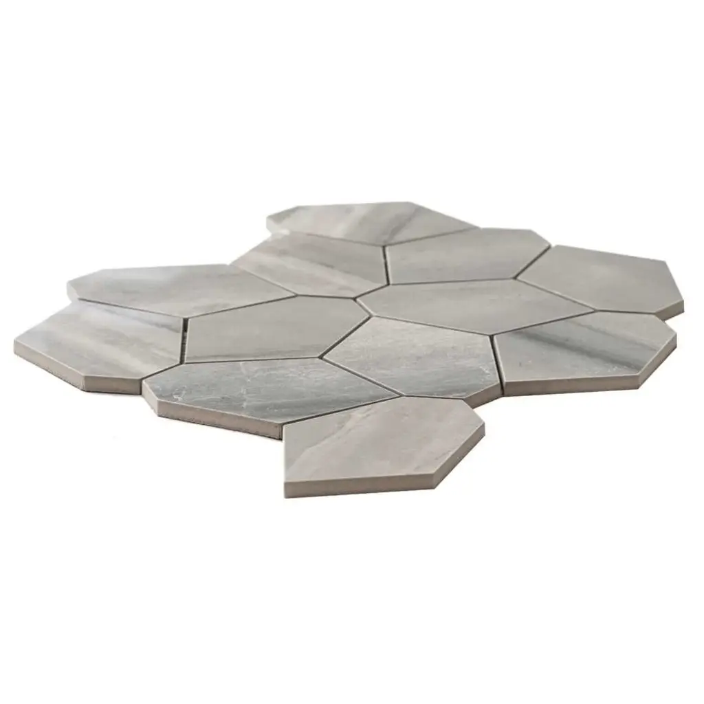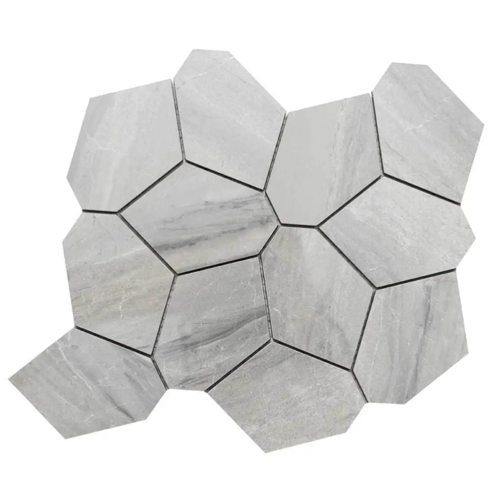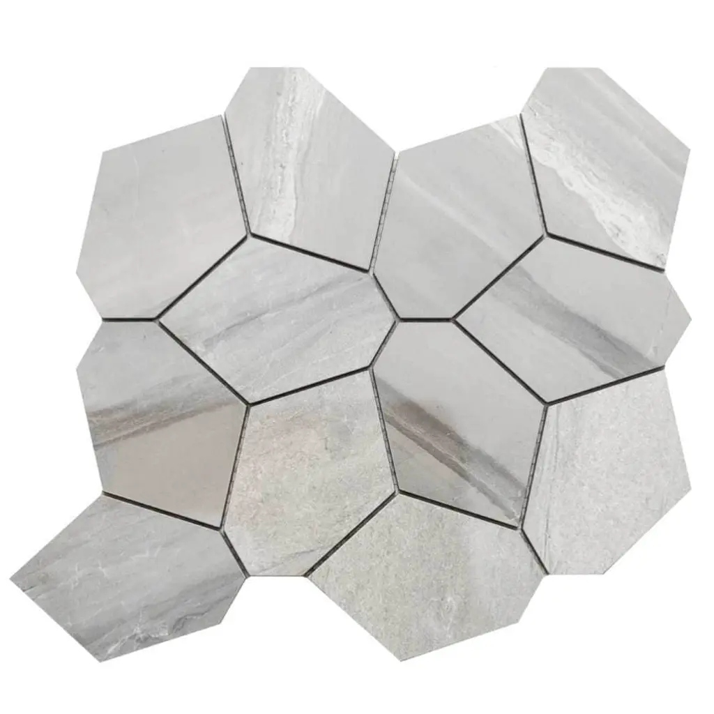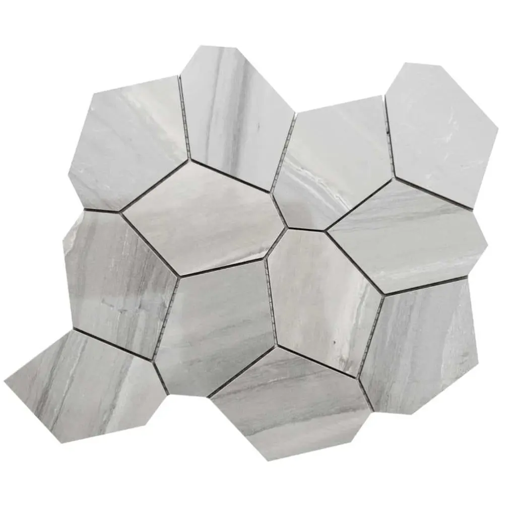 Classic old-world style meets a spa oasis. The Tile Life's new Stately Oasis is the perfect mosaic for any relaxation-inspired room. With each unique shape, these tiles flow together seamlessly, creating a distinctive look in each space in which they are used. Our Stately Oasis' smooth lines bring harmony to your design and put your room décor together with minimal effort. Use this tile for your bathroom floor, shower wall, fireplace surround, or as a kitchen backsplash to balance out your room's boldness. FEATURES: DIMENSIONS: