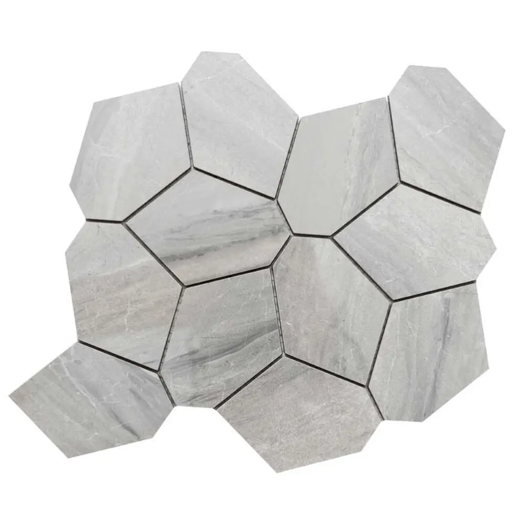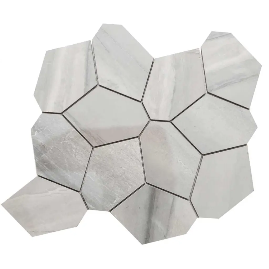 Classic old-world style meets a spa oasis. The Tile Life's new Stately Oasis is the perfect mosaic for any relaxation-inspired room. With each unique shape, these tiles flow together seamlessly, creating a distinctive look in each space in which they are used. Our Stately Oasis' smooth lines bring harmony to your design and put your room décor together with minimal effort. Use this tile for your bathroom floor, shower wall, fireplace surround, or as a kitchen backsplash to balance out your room's boldness.FEATURES:DIMENSIONS: