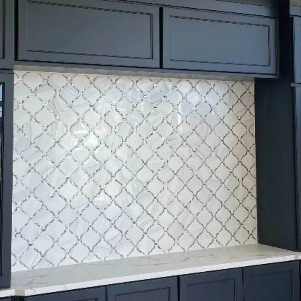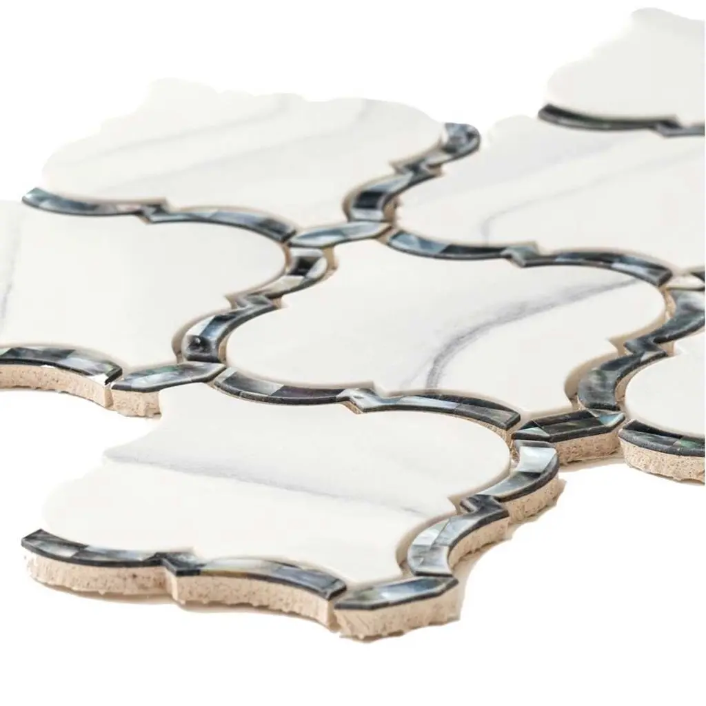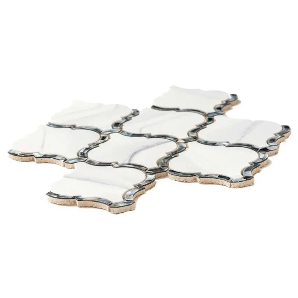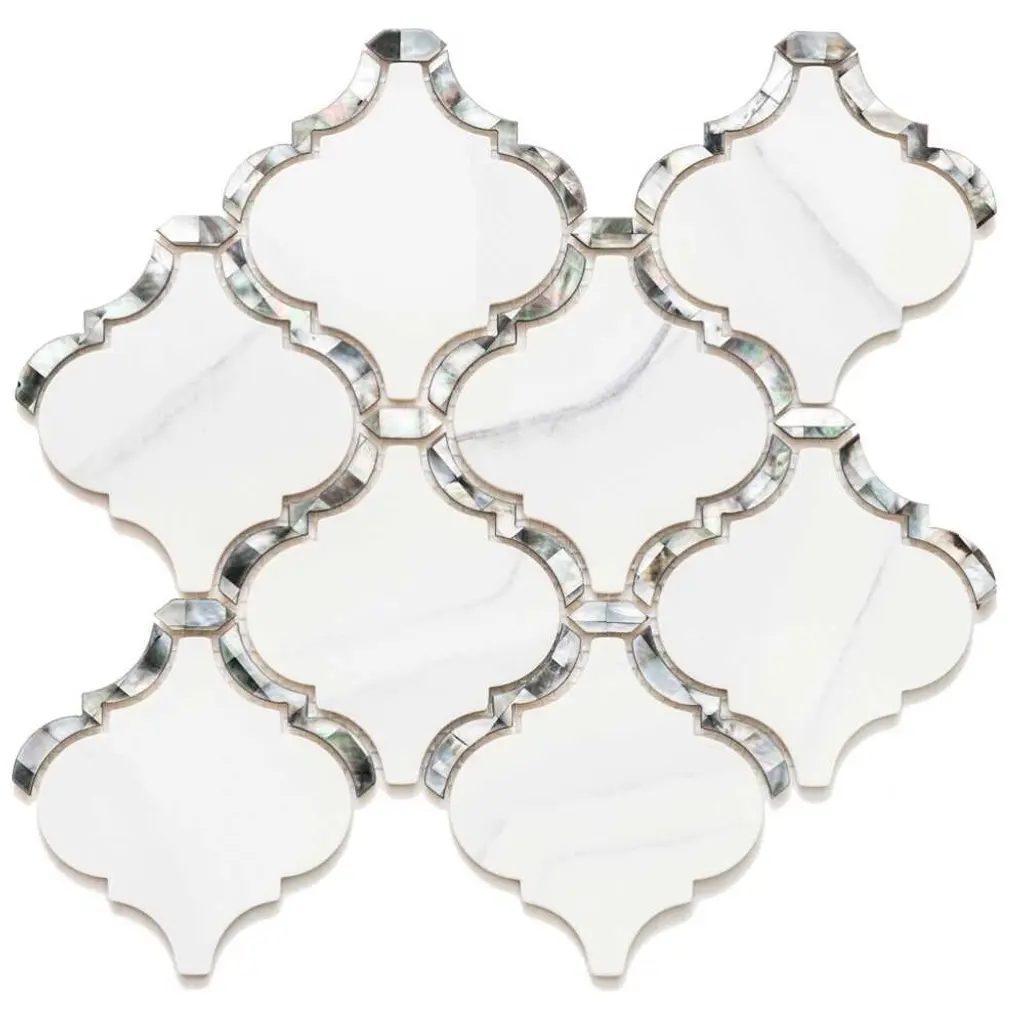 The Tahitian Pearl Lantern tile leaves no space for the unfulfilled. It is available in a satin finish for a more modern look typical of precious glass tiles. Made and designed in Spain from a mix of pearl and glass, this sheet will transform your space leaving your friends and family in awe. The Tahitian Pearl Lantern is a versatile tile perfect for backsplashes, bathroom and kitchen walls, shower walls, fireplace surrounds, and outdoor covered areas. It comes in three elegant colors: Calacatta Gold, Statuario Silver, and White. FEATURES:DIMENSIONS: