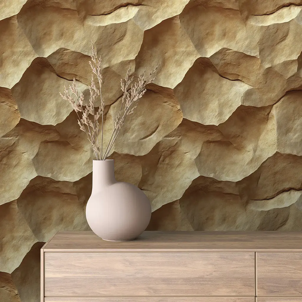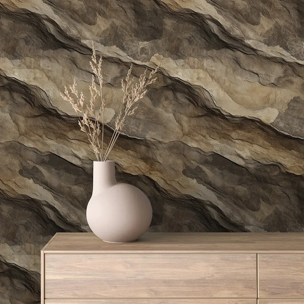 Terran Drift Wallpaper Embrace the raw beauty of the earth with this stunning design. Its rich, textured surface mimics natural rock formations, with deep contours flowing through a warm, neutral palette of brown, taupe, and sand. This wallpaper brings a sense of serene, organic drama, ideal for creating a sophisticated feature wall in a living room, office, or bedroom. You can select from a Peel and Stick Smooth or Canvas Texture Vinyl option, or choose Light Textured Peel and Stick Fabric Wallpaper or Pre-Pasted Traditional Paper. We offer a personalized touch for each order. Please provide the dimensions (height and width) of the walls you wish to cover, and we’ll assist you in calculating the number of wallpaper sheets needed for your project. We understand that managing the details can be overwhelming, but we're here to help! Each panel measures 2 feet wide by 4 to 10 feet high, so multiple panels will be required to cover an entire wall. Wallpaper Samples: We always recommend requesting a sample to assess how our wallpaper adheres to your selected surface and how the design fits within your space. Each sample is available in two formats: A full-size sample to demonstrate the scale of the print. A mini version of a complete 24”x72” sheet to provide an overview of the design pattern. Standard Wallpaper Sheet Sizes: 24" wide x 48" high / 61 cm x 122 cm 24" wide x 72" high / 61 cm x 183 cm 24" wide x 96" high / 61 cm x 244 cm 24" wide x 108" high / 61 cm x 275 cm 24" wide x 120" high / 61 cm x 305 cm Sizes outside those listed are considered custom sizes. Wallpaper sheets can be tailored to be shorter or longer to fit your space perfectly. CUSTOM SIZES and COLORS are available upon request. Please contact us, and we’ll gladly assist you! Every order includes a detailed application manual and installation guide. Panel Overlap: Our wallpaper panels feature a 1-inch overlap, in addition to the 24-inch width. We strongly recommend not removing this overlap during the installation of peel and stick wallpaper. When determining the number of panels required, please do not count the overlap, as it will be covered by the adjacent panel.