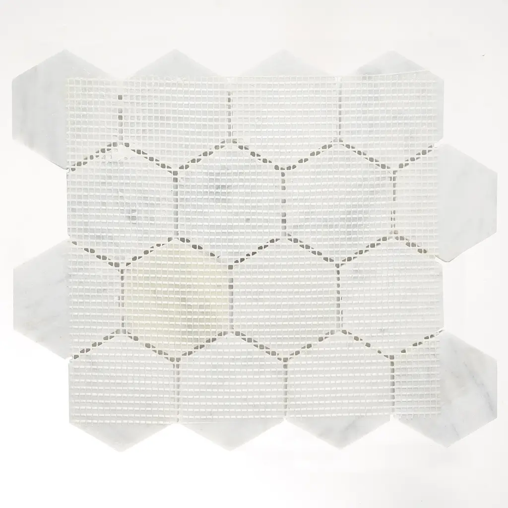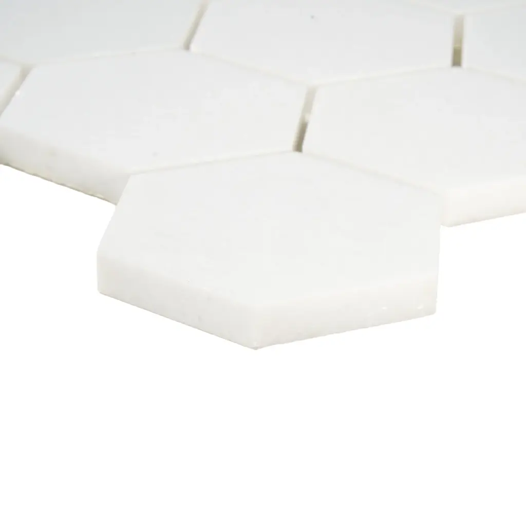 Thassos Marble 3" X 3" Honeycomb Polished Mosaic Tile - Sample - Glossy - White