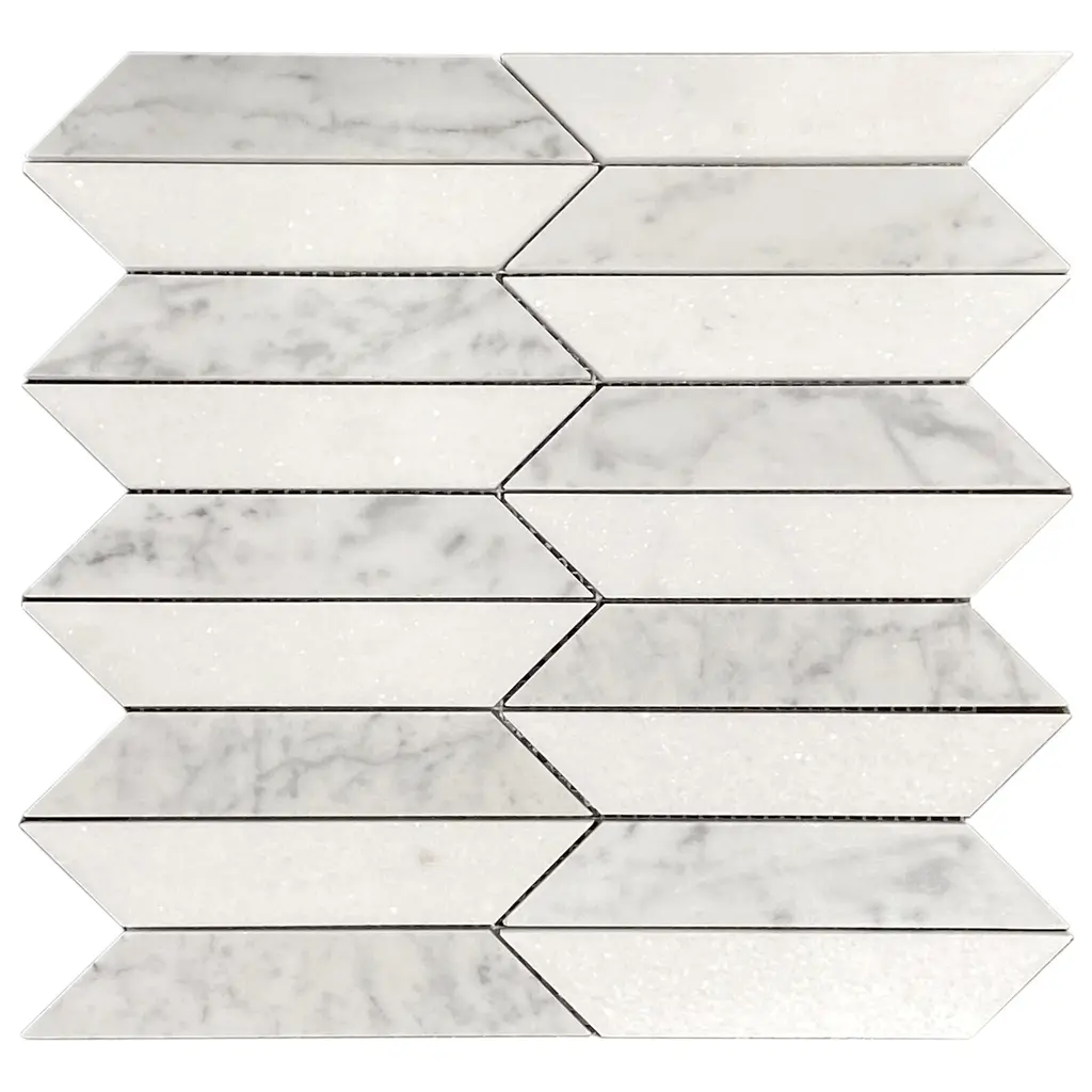 Thassos Marble Picket Water Jet Polished Mosaic Tile - Sample - Glossy - White