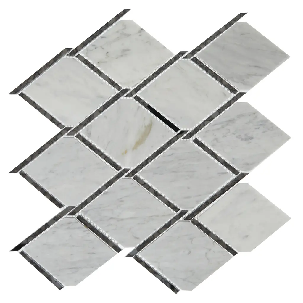 Thassos Picket Water Jet Mosaic Tile is a natural stone tile made from high-quality marble sourced from the Thassos Island in Greece. This tile features small, picket-shaped pieces arranged in a mosaic pattern, with a polished finish that gives it a glossy and reflective surface. The color of the tile is a bright white, creating a classic and elegant look. The Picket Mosaic pattern creates a unique and intricate design that can be used on floors, walls, and backsplashes to add a touch of sophistication to any space. Thassos Picket Water Jet Mosaic Tile is a durable and long-lasting option for both residential and commercial settings, and its polished finish makes it easy to clean and maintain. The picket shape of the tile is a popular choice for those looking to create a unique and modern look in their space, while still maintaining a classic and timeless feel.What's included?Product DetailsSample Details